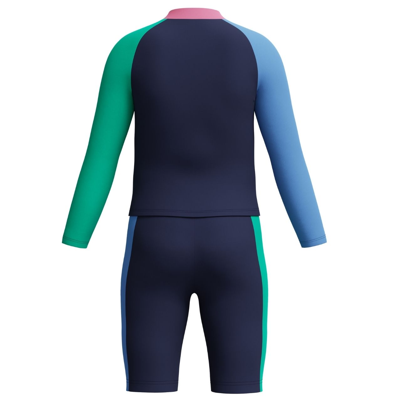 Make a splash with our colour-block Long-Sleeve Rash Top Set, designed for endless adventures and fun by the water. This set includes a comfy pull-on rash top and matching long jammers, both featuring UPF 40+ sun protection to keep kids shielded from harmful rays, whatever the weather.