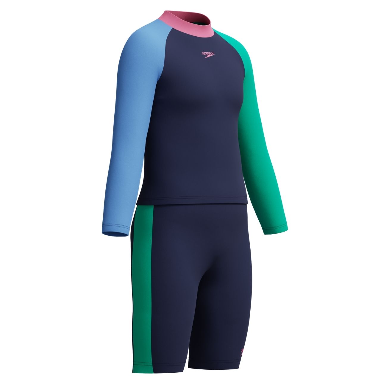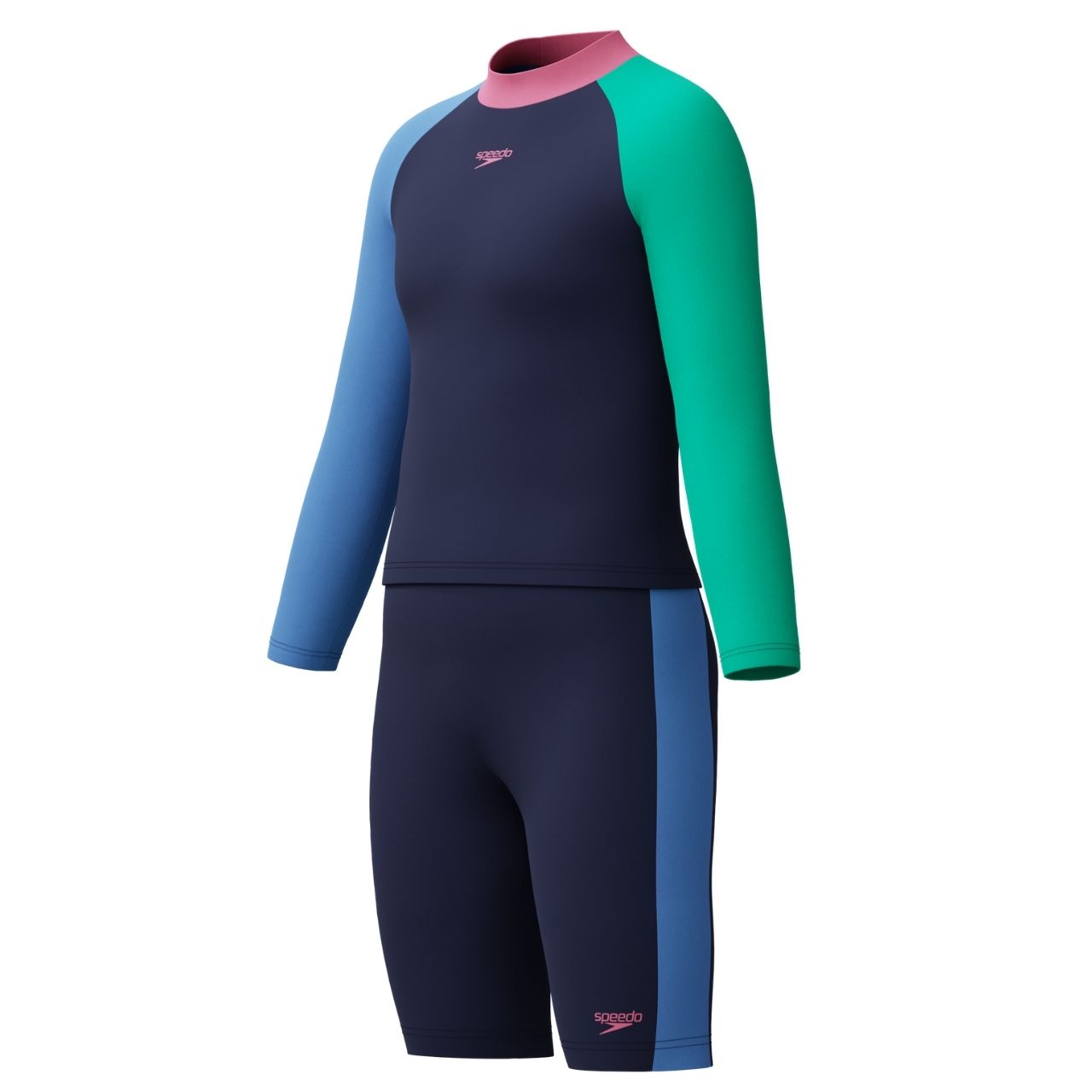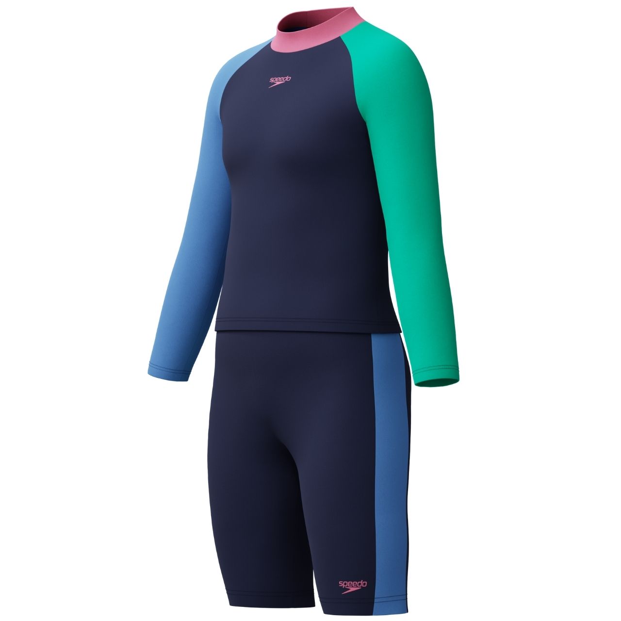 Speedo Girls Colorblock Rashtop & Jammer Set Peacoat/Periwinkle Blue 8-003731002