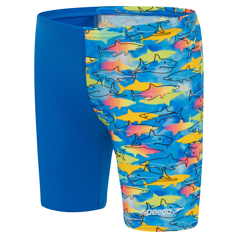 Transform swim time into an exciting adventure with the Speedo Aussie Exclusive Cool Digi Shark Jammers. Designed for young swimmers who love to make a splash, these jammers blend playful graphics with high-performance features. Crafted from our most durable endurance+ fabric, these jammers offer ultra chlorine resistance. They maintain their vibrant colors and shape swim after swim, providing long-lasting performance. The jammers fall just above the knee, offering a sporty and comfortable fit that's perfect for active swimming.