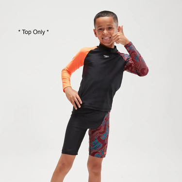 Sun protection swimwear for swimming, surfing, and beyond. Perfect for beach days spent in and out of the water, our Long Sleeve Rash Top is ideal for active kids and includes a striking asymmetric sleeve featuring our dot-art print design. The long sleeve pull-on style offers protection from the elements, while the UPF40+ fabric provides sun protection both in and out of the water. Taking young swimmers from the beach to the pool, our ECO EnduraBrite fabric offers superb color performance, so you can enjoy the rich color for longer. Providing higher chlorine resistance than standard swimwear fabrics, the rash top fits like new for longer with CREORA® HighClo™ and is made from 100% post-consumer waste, such as plastic bottles.