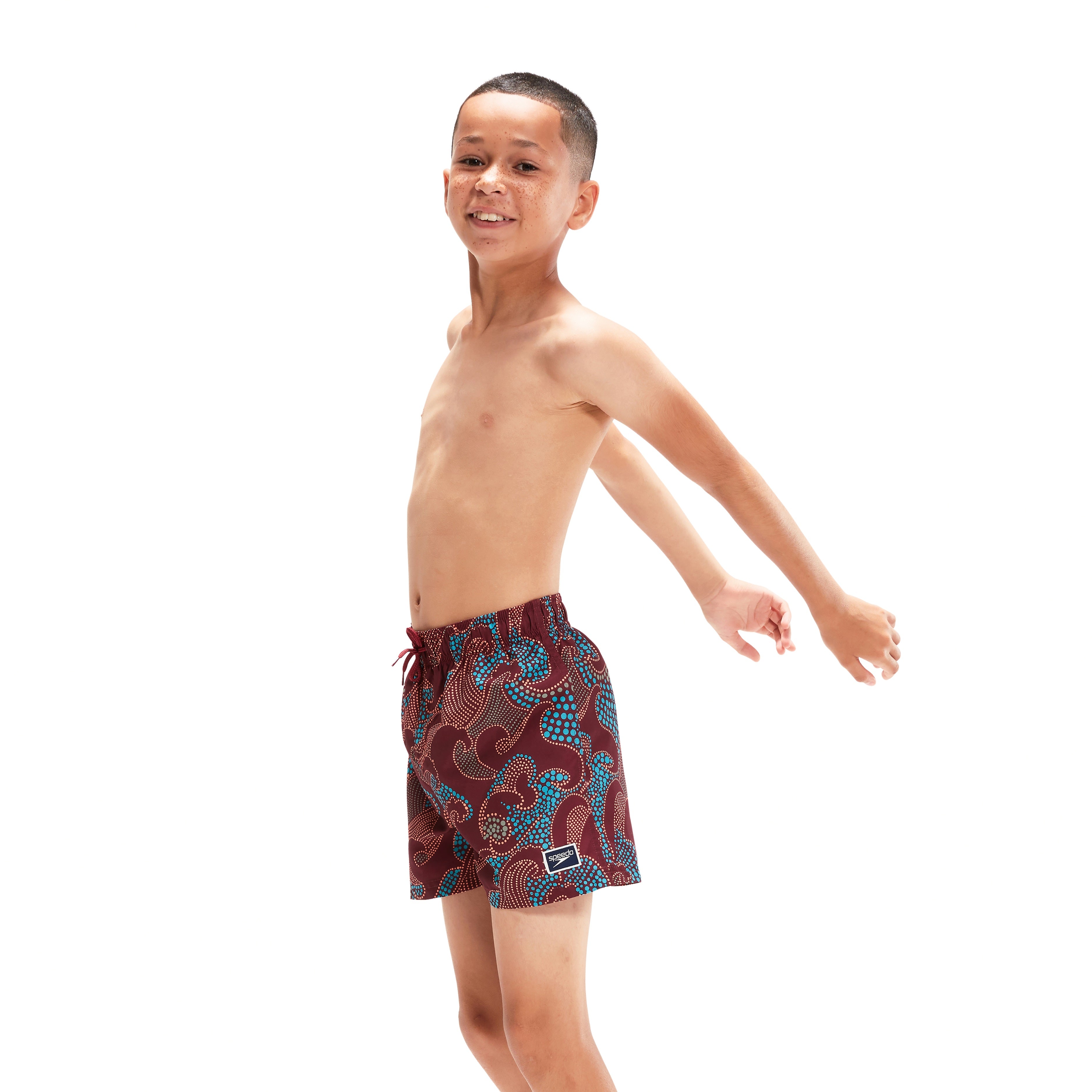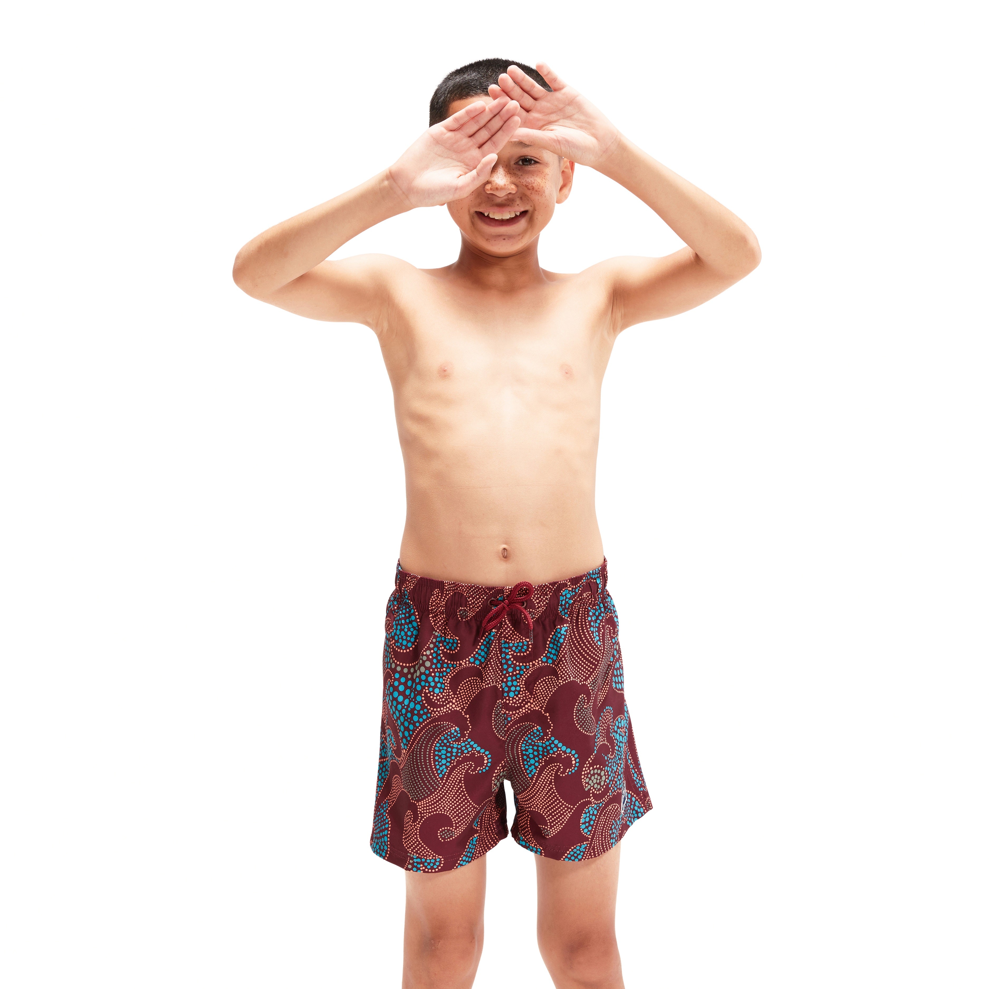 It’s a Bondi vibe. Inspired by the craft markets of Bondi Beach, this 13” Watershort features a dot-art pattern in rich, earthy tones. The comfy design includes an inner mesh brief and an elasticated waistband with an external drawcord to allow young swimmers to adjust the fit. Lightweight in and out of the water, the water short includes back pocket drainage, so it won’t waterlog or fill with sand. The brushed-finish fabric feels comfortable and soft against the skin. Made from 100% recycled post-consumer waste, it’s better for the environment too.