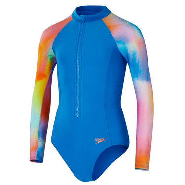 Botanical Ombre Girls Long Sleeve Swimsuit (Punch Blue)