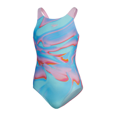 With its high-vibe colors and marbled print, this stylish Fandango Pink Girls Printed Pulseback swimsuit is a must-pack for sunny climes and fun in the pool. Featuring a high neck and sporty back, the pulseback style offers just the right amount of coverage for the junior swimmer and is lined at the front and back for comfort and modesty. Taking them from beach to pool, our EnduraBrite fabric offers superb comfort made in part from recycled plastic bottles - the polyester yarn in the EnduraBrite fabric is made from 100% post-consumer waste.