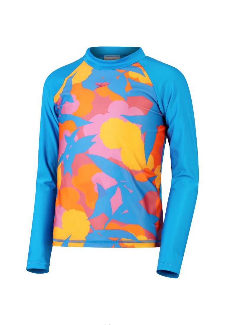 Radiate summer vibes by wearing this vibrant Long Sleeve Rash Top featuring the sun-kissed colors of our macro floral print. The comfy pull-on rash top includes UPF40 for sun protection in and out of the water. Our Eco EnduraBrite fabric offers higher chlorine resistance than standard swimwear fabrics, delivers superb color performance, and fits like new for longer with CREORA® HighClo™. Made from recycled plastic bottles and the polyester yarn in the Eco EnduraBrite fabric is made from 100% post-consumer waste. The pull-on rash top is perfect for sun protection in and out of the water with higher chlorine resistance than standard swimwear fabrics – fits like new for longer with CREORA® HighClo™​. High color performance – enabling the use of fluo and bright colors.
