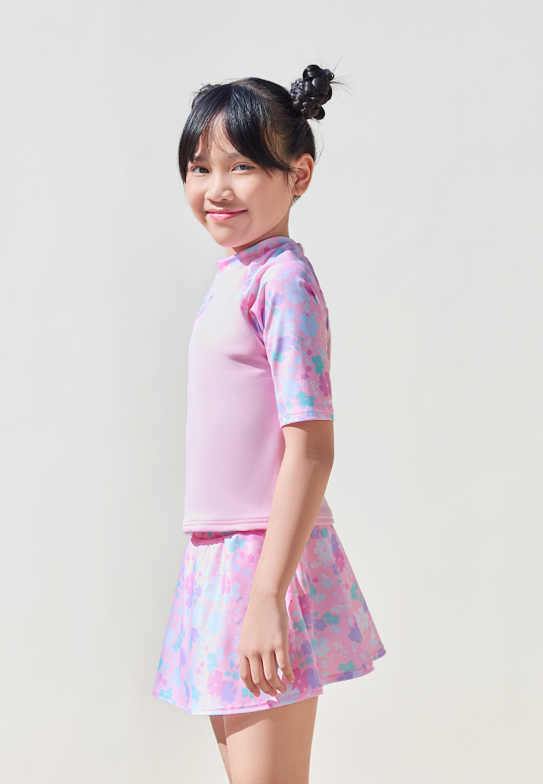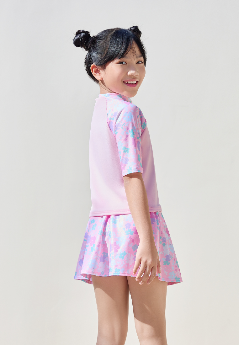S&L Floral Print Swim Skirt and Long Sleeve Rash Top
