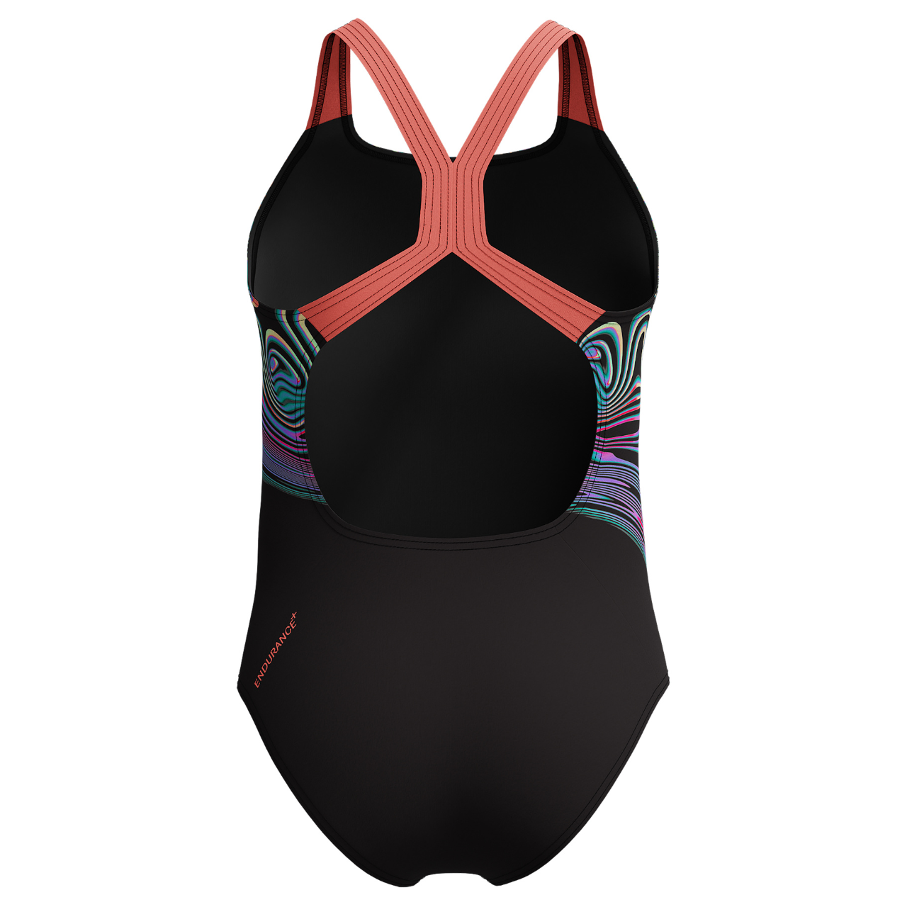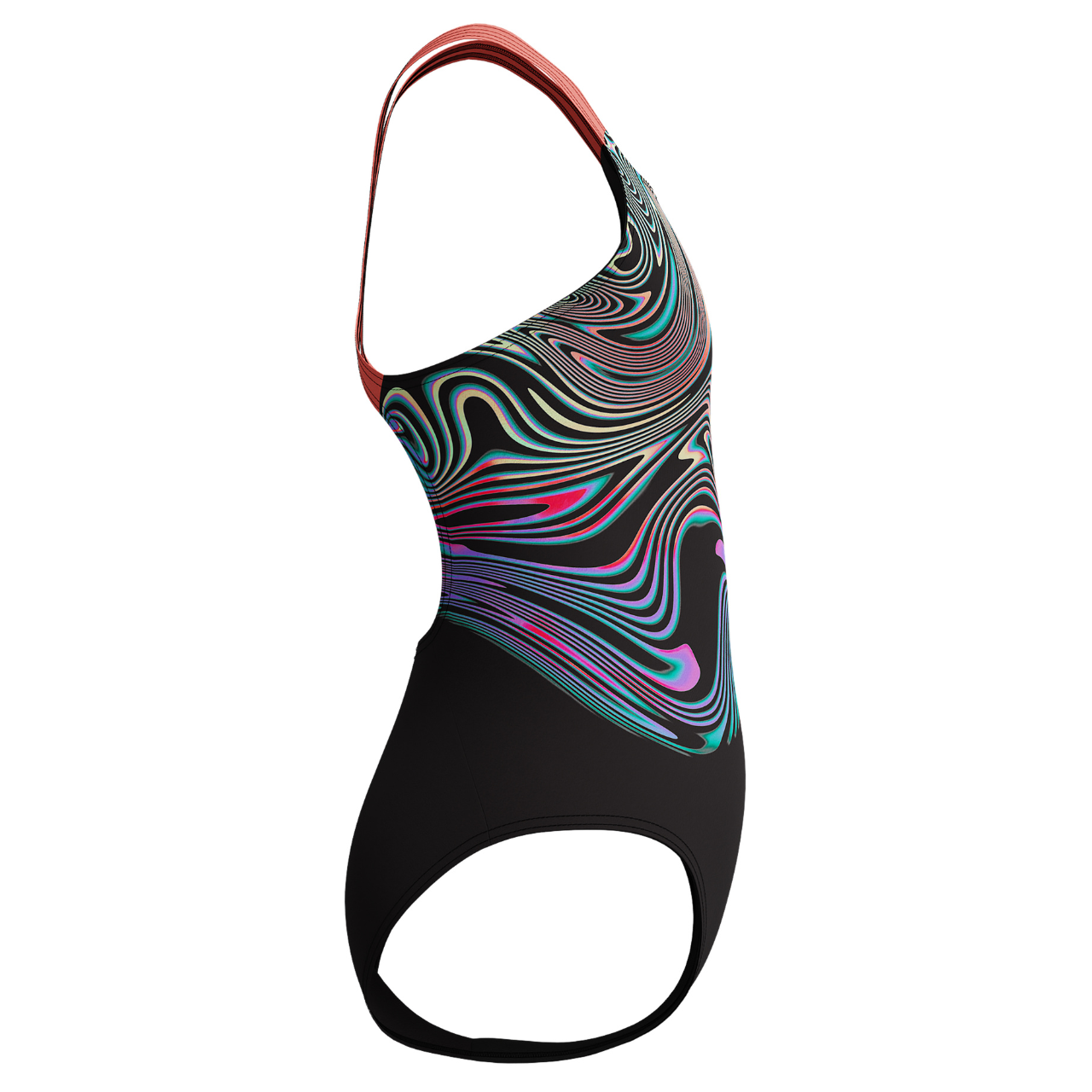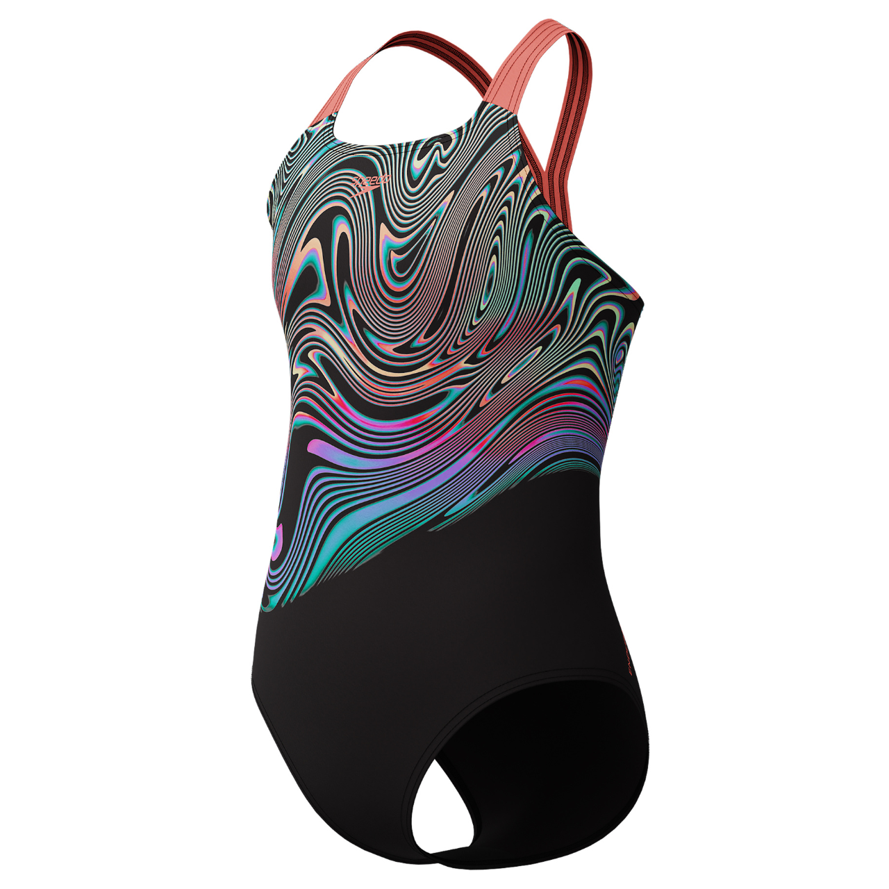 Watch them deliver a hypnotic performance wearing our mesmerizing ripple-print powerback swimsuit. A go-to for junior training, its powerback design aids shoulder movement and flexibility, so they can give it their all. Cut from quick-drying, chlorine-resistant endurance+ fabric for superb durability. Body made of 53% polyester and 47% pbt.