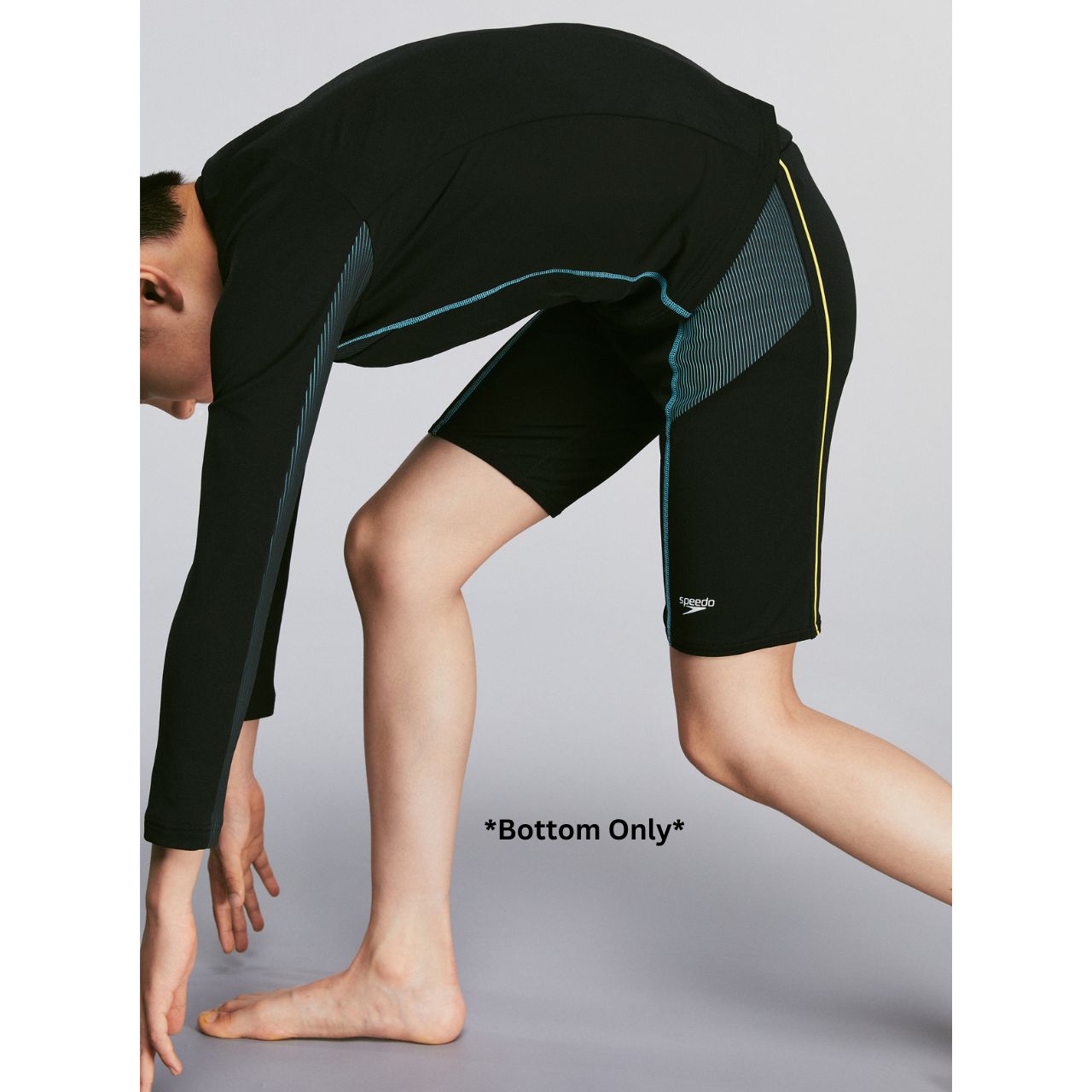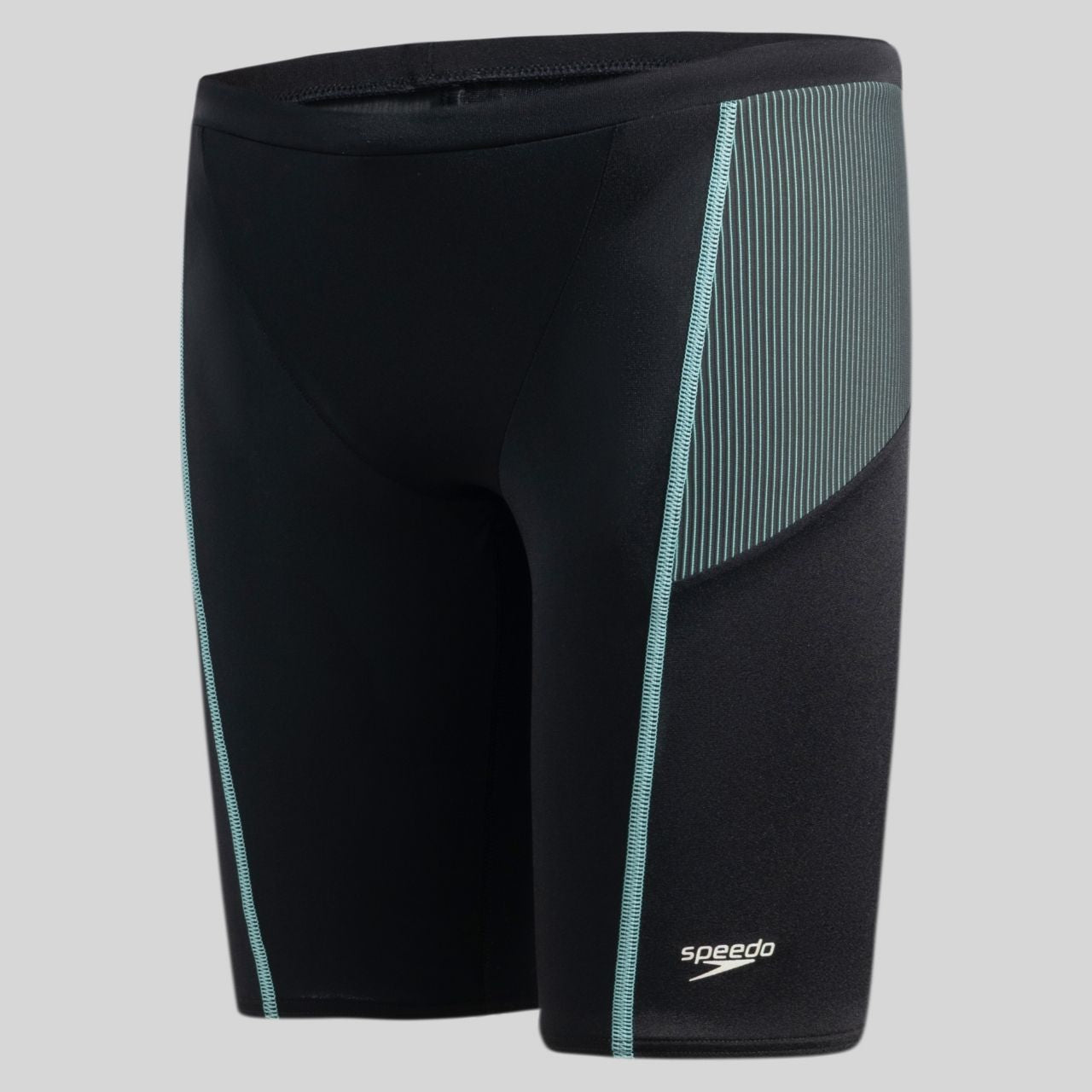 Hero 6.0 Junior Boy Jammer. Light and shadow in sync, presenting a new style of swimwear. Right length for a greater length. Tailored specifically for Asian body shapes, offering a snug fit like a second skin. Pitch black base paired with light reflecting aurora-inspired lines, crafting a three-dimensional masterpiece in the interplay of light and shadow. Revitalizing the dynamic form of swimwear in a new era. Empowering the new generation, witnessing the strength of youth. Endurance + MAX technology keeps water beads rolling off without sticking. Highly resistant to chlorine, offering lasting protection that remains as good as new. Effortless sun defense for all occasions, protecting your skin while enjoying the outdoors.