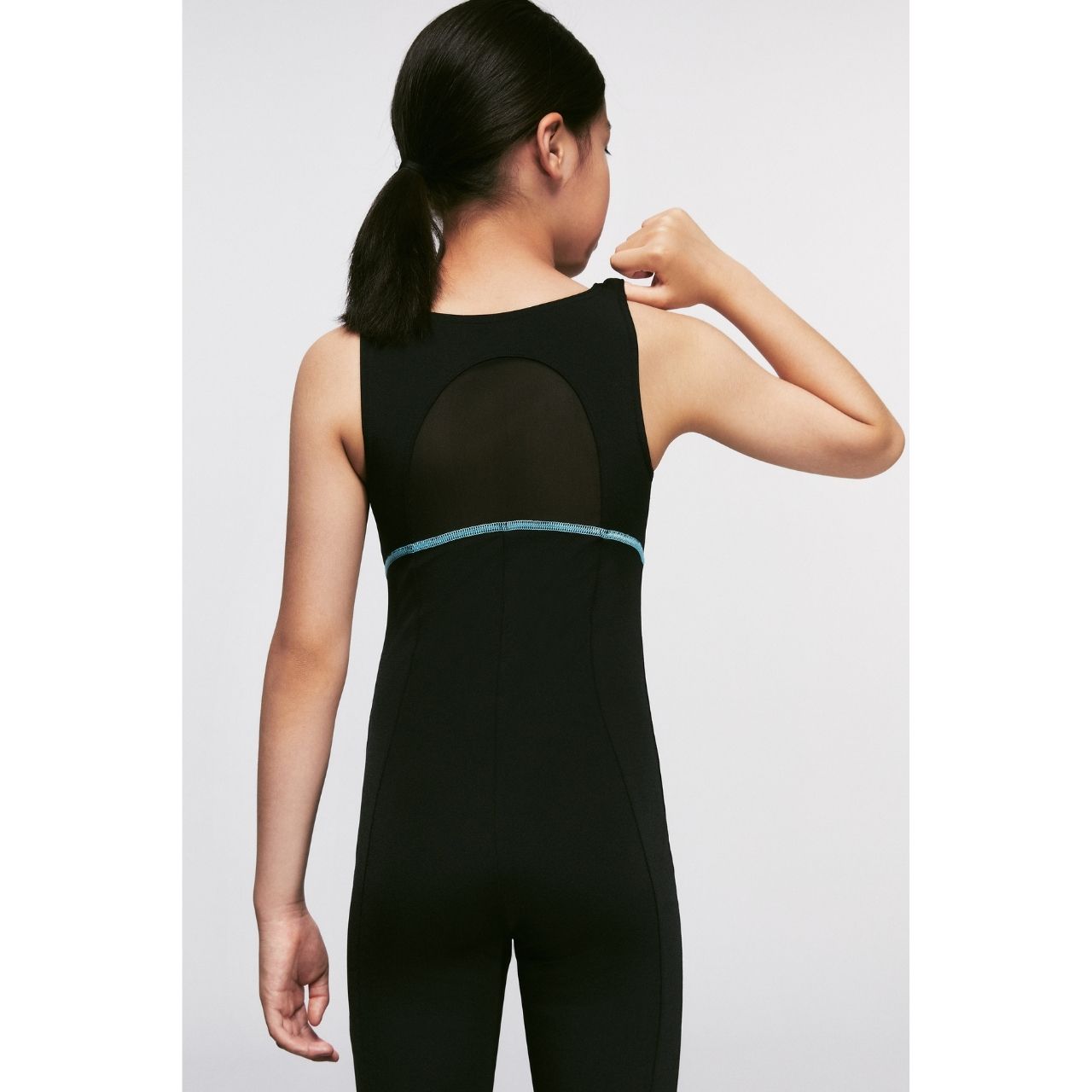 Hero 6.0 Junior Girl Kneesuit 1 Pc Light and shadow in sync, presenting a new style of swimwear. High elasticity, Chlorine-resistant, Sun protection. Introducing the all-new Junior version with Fastskin-inspired elements. Designed with the concept of light and shadow contrasting aesthetics with two advanced fabric technologies combined, this kneesuit aims to empower tomorrow's stars, showcasing the power of the next gen. Empowering the new generation, witnessing the strength of youth. Efficient dual-strap design activates back and shoulder muscles, allowing unrestricted movement in any direction. Endurance + MAX technology keeps water beads rolling off without sticking. Highly resistant to chlorine, offering lasting protection that remains as good as new. Effortless sun defense for all occasions, protecting your skin while enjoying the outdoors.