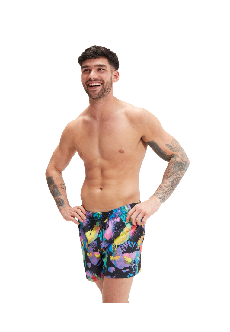 Understated style - from beach to bar. Make a style statement in fluorescent UV-style colors wearing our 14-inch Watershort and go from sun lounger to sundowner with ease. Comfy in and out of the water, the short includes 4-way Comfort Stretch fabric and features a flat-front waistband with Velcro fly and an exposed elastic back. An inner Comfort Liner provides support during active pool sessions and includes outward stitching to prevent chafing. Quick-drying with durable water repellency, the shorts include a handy front coin pocket and a back welt pocket. One of the yarns in this product was made from recycled polyester.