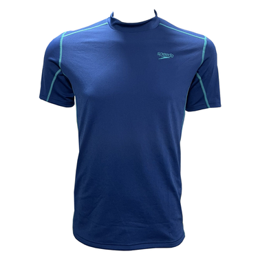 Keep your cool as summer approaches with this short sleeve rash top made from Eco Endurance+ fabric. This rash top helps you stay comfortable and look great while swimming. Featuring an ammonite blue color and aqua-blue details, this rash top will make you the envy of your friends at the beach. Made from chlorine-resistant materials, this fabric is sustainable and helps ensure a comfortable fit so you can splash around all day long!