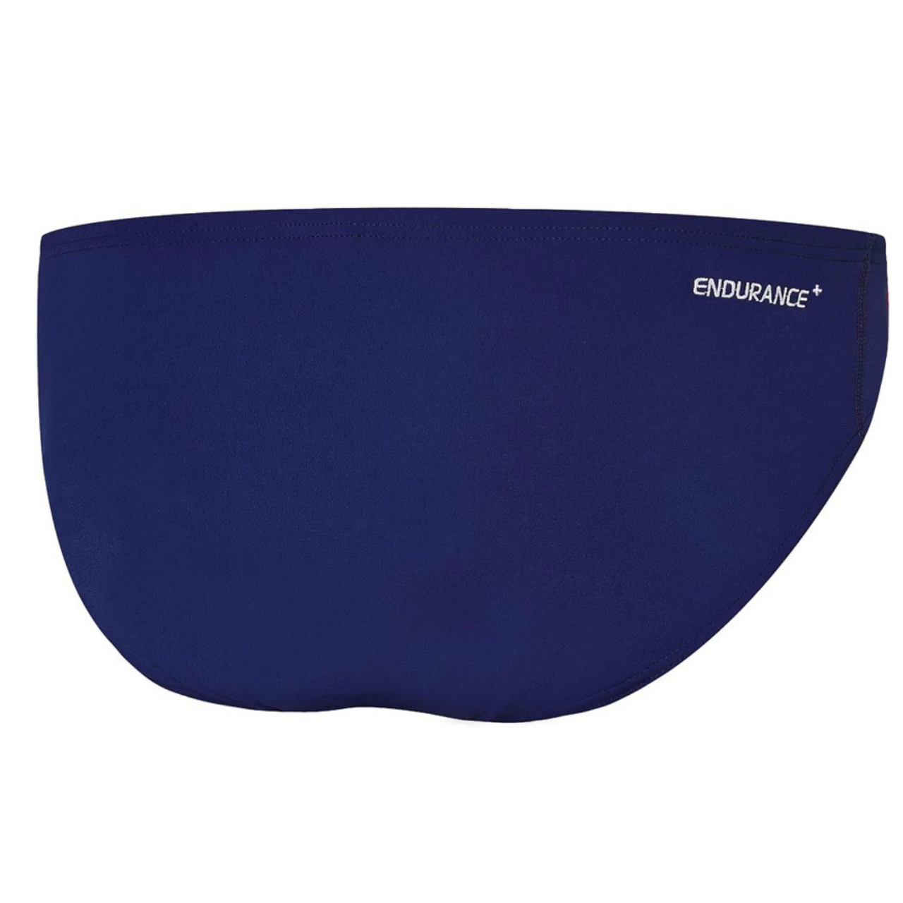 This brief in classic navy features contrast colored side panels. A drawstring waist and integral support provide comfort and security. Our 100% chlorine resistant, Endurance+ fabric makes this style ideal for everyday swim fitness training.