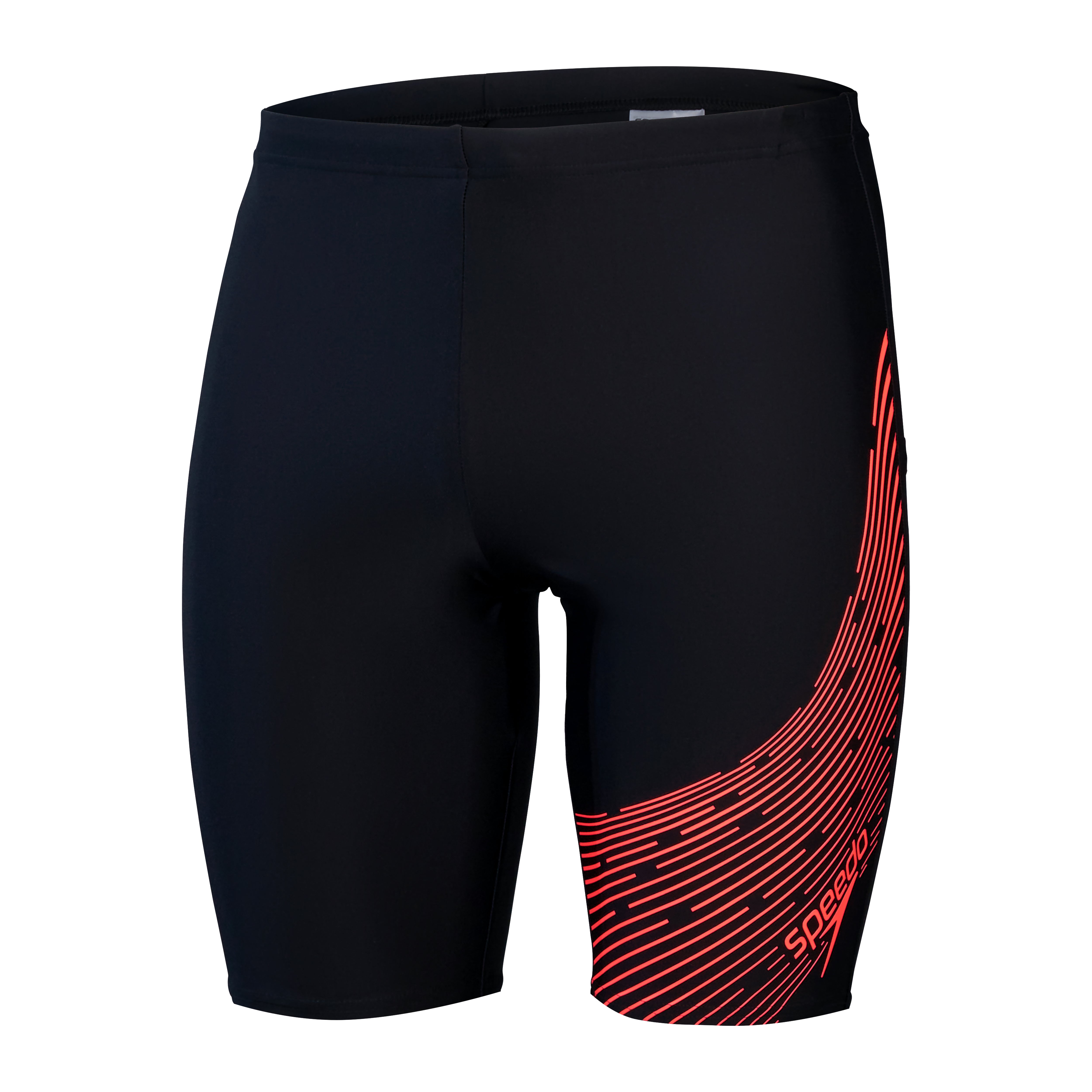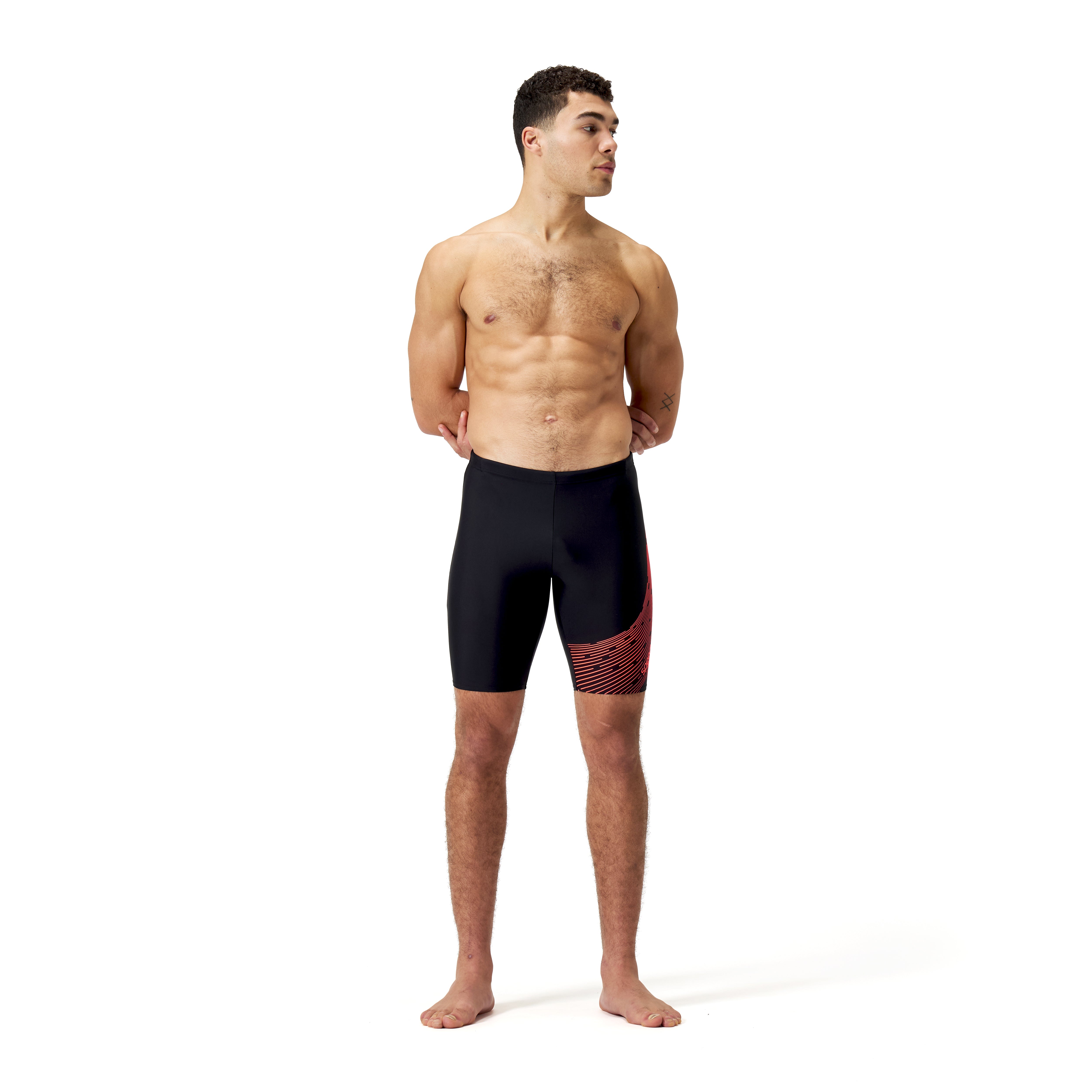 Style and durability from our Classics range. Feel comfortable and supported during training wearing the Medley Logo Jammer, featuring integral support and a drawstring waist. Streamlined in black with a contrasting red asymmetric kinetic wave design to the leg, it offers everything you need for a great swim. A great choice for frequent training sessions, our EnduraFlex fabric offers higher chlorine resistance than standard swimwear fabrics and fits like new for longer with CREORA® HighClo™. In addition, nylon yarns in the EnduraFlex fabric are made from 100% pre-consumer waste, such as waste fabric from factories