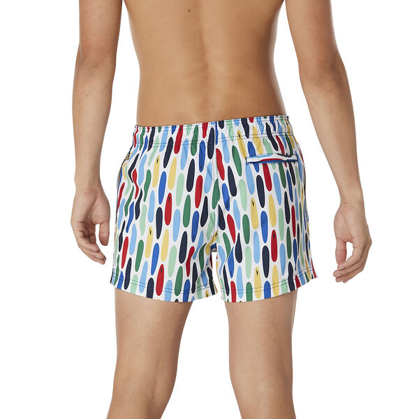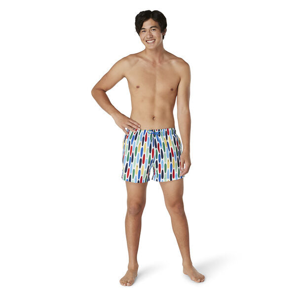 Understated style – from the beach to the bar. Catch a break wearing our colorful surfboard print 14” Watershort and go from sun lounger to sundowner with ease. Comfy in and out of the water, this short includes ECO 4-way Comfort Stretch fabric made from 50% recycled materials and features a flat-front waistband with a Velcro fly and an exposed elastic back. An inner Eco Comfort Liner provides support during active pool sessions and includes outward stitching to prevent chafing. Quick-drying with durable water repellency, the shorts include a handy front coin pocket and a back welt pocket.