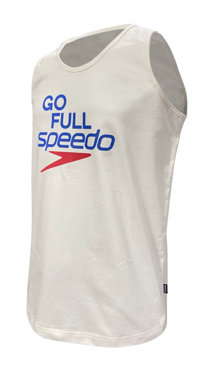 Keep it classic and comfortable with the Male Volley Vest in Go Full Speedo White. Made from 100% soft cotton, this sleeveless top offers a breathable, lightweight feel that’s perfect for warm days or layering. Featuring the bold “GO FULL SPEEDO” graphic with the iconic Speedo logo, it delivers a sporty edge to your casual style, ideal for training, lounging, or beachside wear.