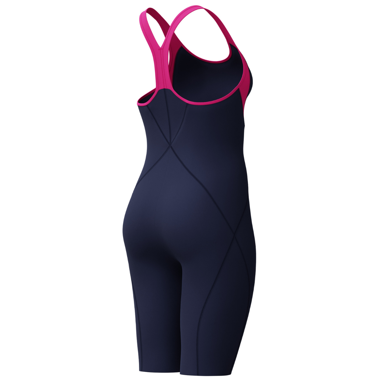 High coverage swimwear. This sporty Sleeveless Kneesuit in neon pink strap has an open back and shoulders for increased shoulder flexibility during your workout. Contrasting light green straps and contour details give it a high-performance look, whilst removable bra pads provide comfort and modesty. Offering higher chlorine resistance than standard swimwear fabrics, our shape-retaining Endurance10 fabric fits like new for longer with CREORA® HighClo™.