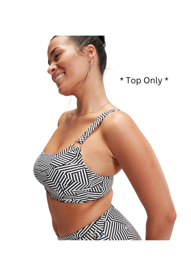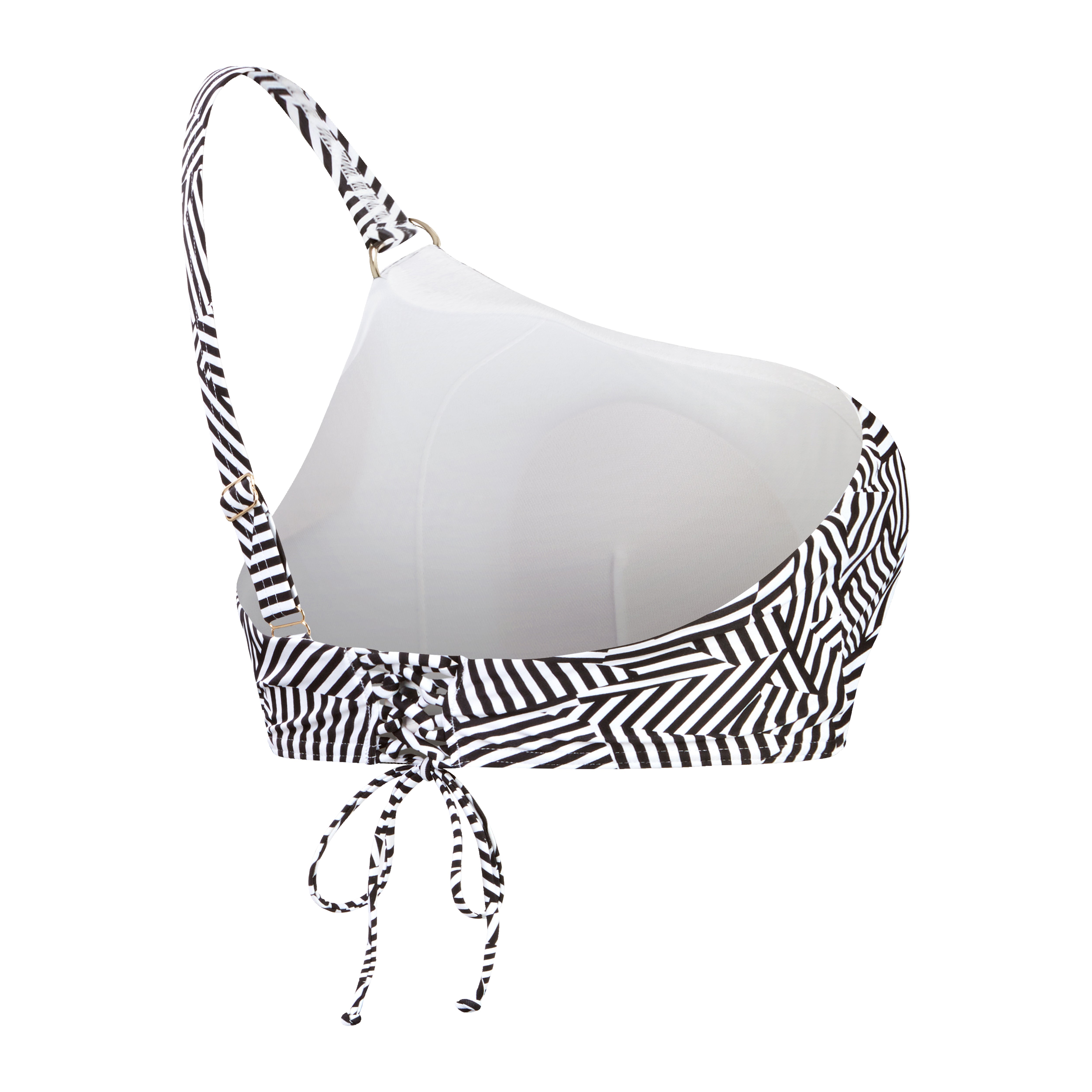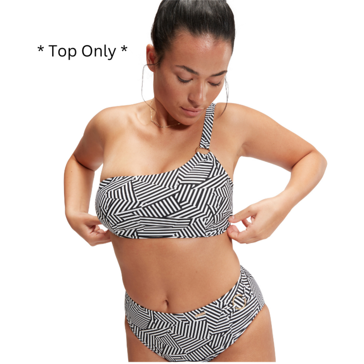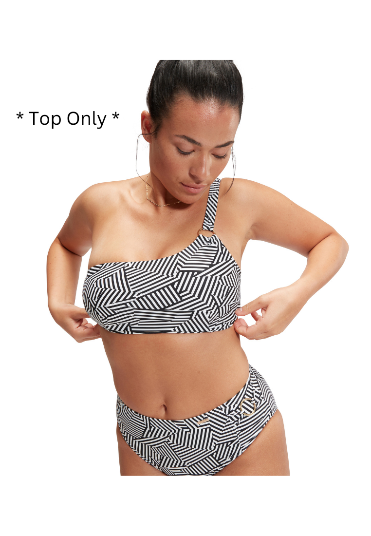 Ensure your holiday style is on point with our new range of mix-and-match shaping separates. Oozing poolside glamour, this sleek Monochrome Shaping Asymmetric Top features a sophisticated one-shoulder neckline and a stunning laced back for a customized fit. The chic design is finished with an embossed gold ring at the adjustable strap with removable bra pads for support and shaping. Cut from our premium, comfortable body-shaping fabric, which works to smooth and contour the body, best ideal for the beach or pool. Offering a higher chlorine resistance than standard swimwear fabrics, our new shaping fabric fits like new for longer with CREORA® HighClo™. The Nylon yarn in our new shaping fabric is also made from 100% pre-consumer waste, such as waste fabric from factories.