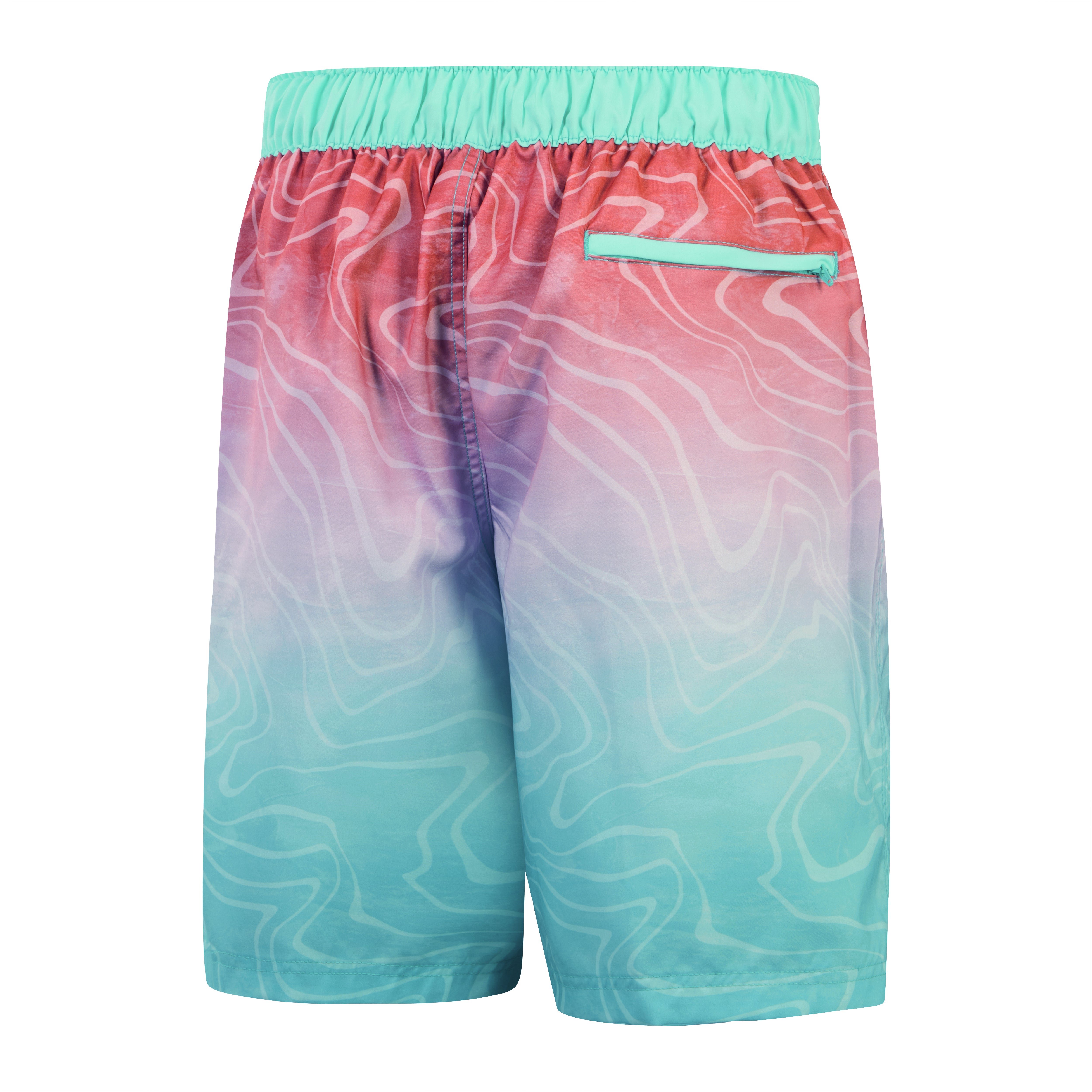 Catch some rays wearing our striking 20" Watershort in an ombre print featuring 4-way Comfort Stretch fabric and incorporating a soft Jacquard waistband with an adjustable drawstring. The shorts offer a comfy, tailored fit, and an inner Comfort Liner provides support during active pool sessions and includes outward stitching to prevent chafing. Side pockets with drainage keep the shorts lightweight, while a back zip pocket safely stores your essentials. Quick-drying and designed with durable water repellency. One of the yarns in this product is made from recycled polyester.