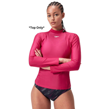 Stylish sun protection swimwear. Come rain or shine, this magenta-colored Long Sleeve Rash Top from our Classics range has you covered. Snug-fitting in a pull-on style, it features flatlock seams for a comfortable fit against the body and includes UPF40+ fabric sun protection – ideal for active beach days spent in and out of the water. Offering higher chlorine resistance than standard swimwear fabrics, our EnduraBrite fabric delivers superb color performance and fits like new for longer with CREORA®HighClo™. Made in part from recycled plastic bottles - the polyester yarn in the EnduraBrite fabric is made from 100% post-consumer waste