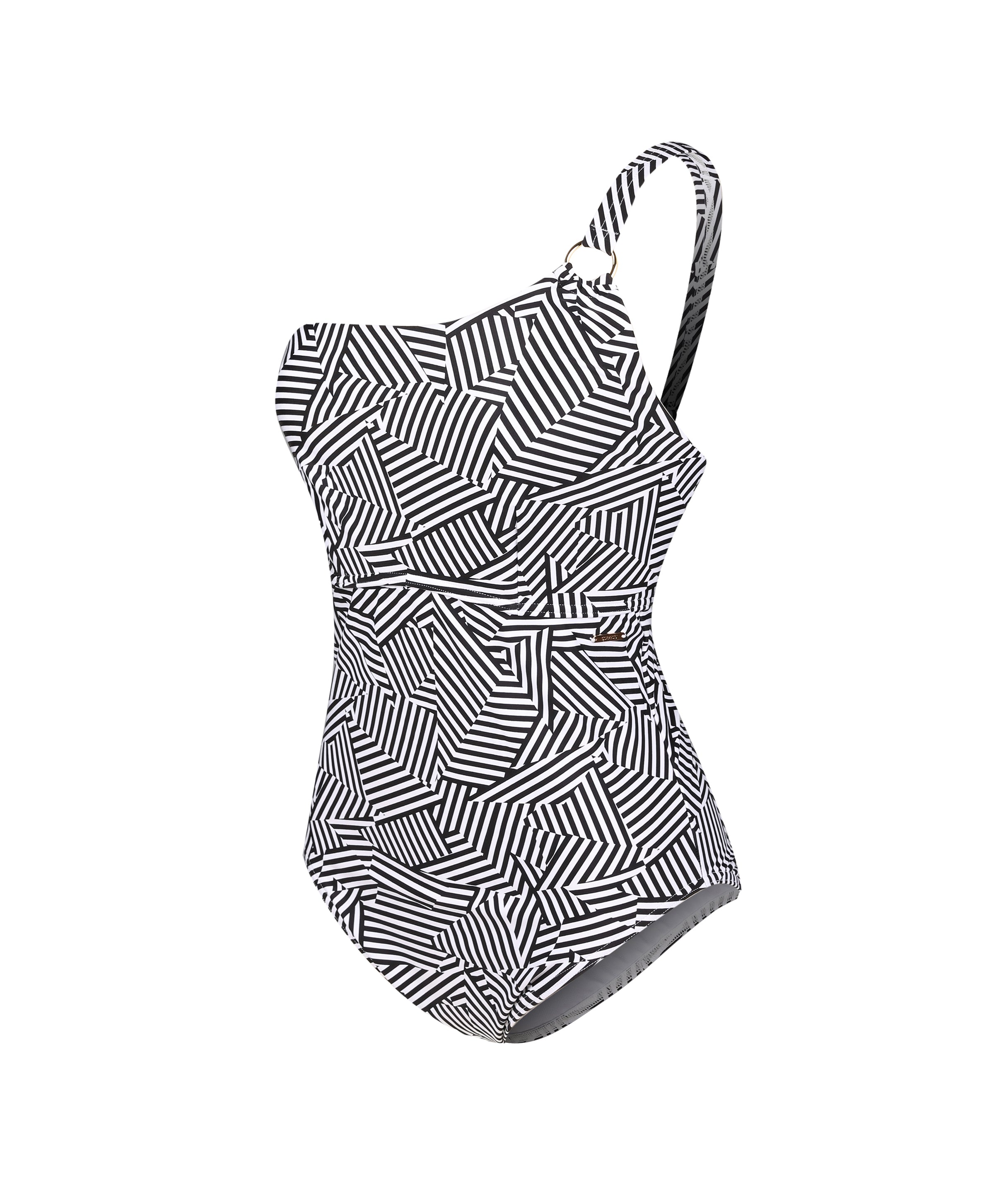 Oozing poolside glamour, this monochrome-print Asymmetric Shaping swimsuit features a sophisticated one-shoulder neckline and a stunning laced back for a customized fit. The chic design is finished with an embossed gold ring at the adjustable strap and includes removable double bra pads for support and shaping. Cut from our premium body-shaping fabric, which works with the patterned print to smooth our body, it’s ideal for the beach or pool. Offering higher chlorine resistance than standard swimwear fabrics, it fits like new for longer with CREORA® HighClo™. The Nylon yarn in this fabric is made from 100% pre-consumer waste, such as waste fabric from factories.
