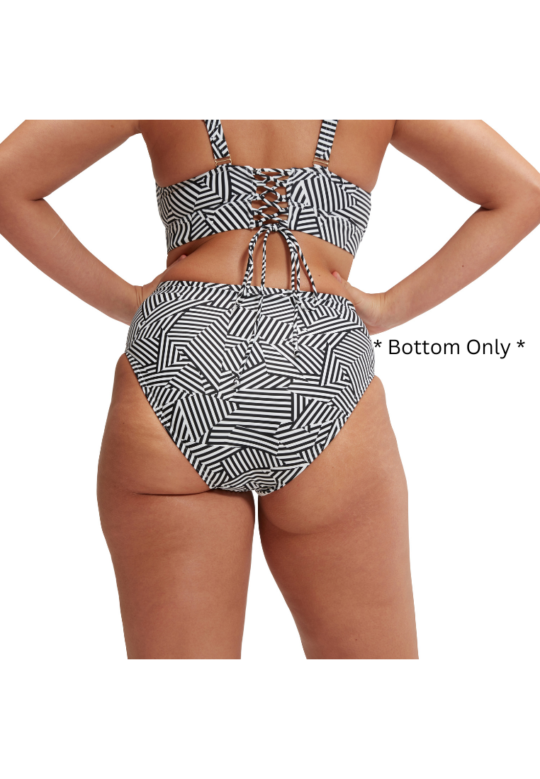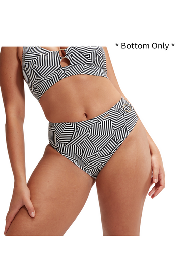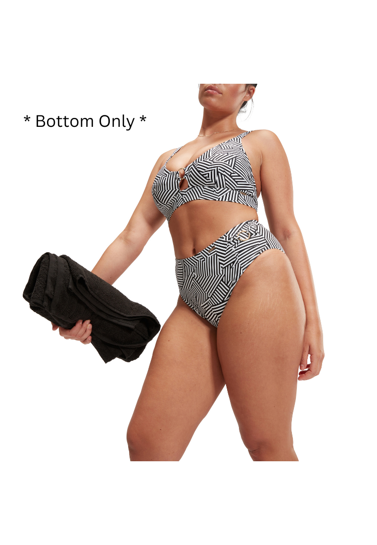 Ensure your holiday style is on point with our new range of mix-and-match Shaping separates. Oozing poolside glamour, this Monochrome Shaping High Waisted Brief comes in a flattering high waist design and includes a stylish monochrome print and gold embossed branding. Wear it with the matching bikini top, or mix it up in contrasting colors. Cut from our premium, comfortable body-shaping fabric, which works to smooth and contour the body, it’s ideal for the beach or the pool. It offers much higher chlorine resistance than standard swimwear fabrics. Our new shaping fabric fits like new for longer with CREORA® HighClo™. The Nylon yarn in our new shaping fabric was also made from 100% pre-consumer waste, such as waste fabric from factories.