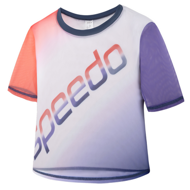 The dynamic, gradient brand logo carries an inherent elegance, igniting the moments of a sweaty and energetic workout. The sheer, mesh fabric material flows freely with the body, elevating the fashionable layering experience during active movement. The classic high-waisted style visually elongates the proportions of the legs, creating a streamlined, slender silhouette for a stylish look. Cropped design, optimizing body proportions