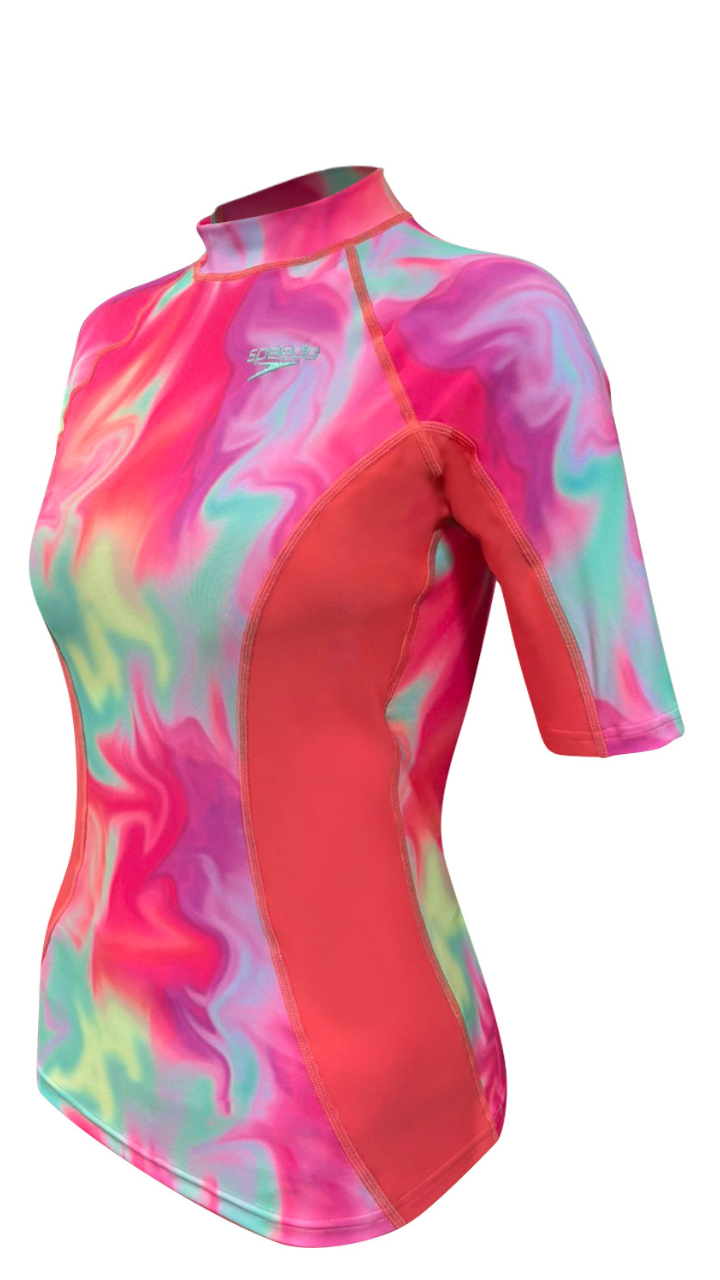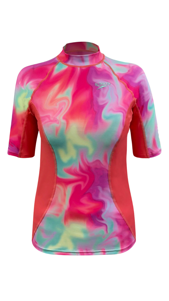 Embrace the Hula Blend with the Speedo Printed Short Sleeve Rash Top. Designed with Eco Endurabrite fabric, made from recycled plastic, this sustainable and high-performance rash top delivers durability, comfort, and flexibility—perfect for active water enthusiasts. Ideal for swimming, surfing, and beach adventures, this stylish and functional rash top keeps you feeling confident and comfortable.