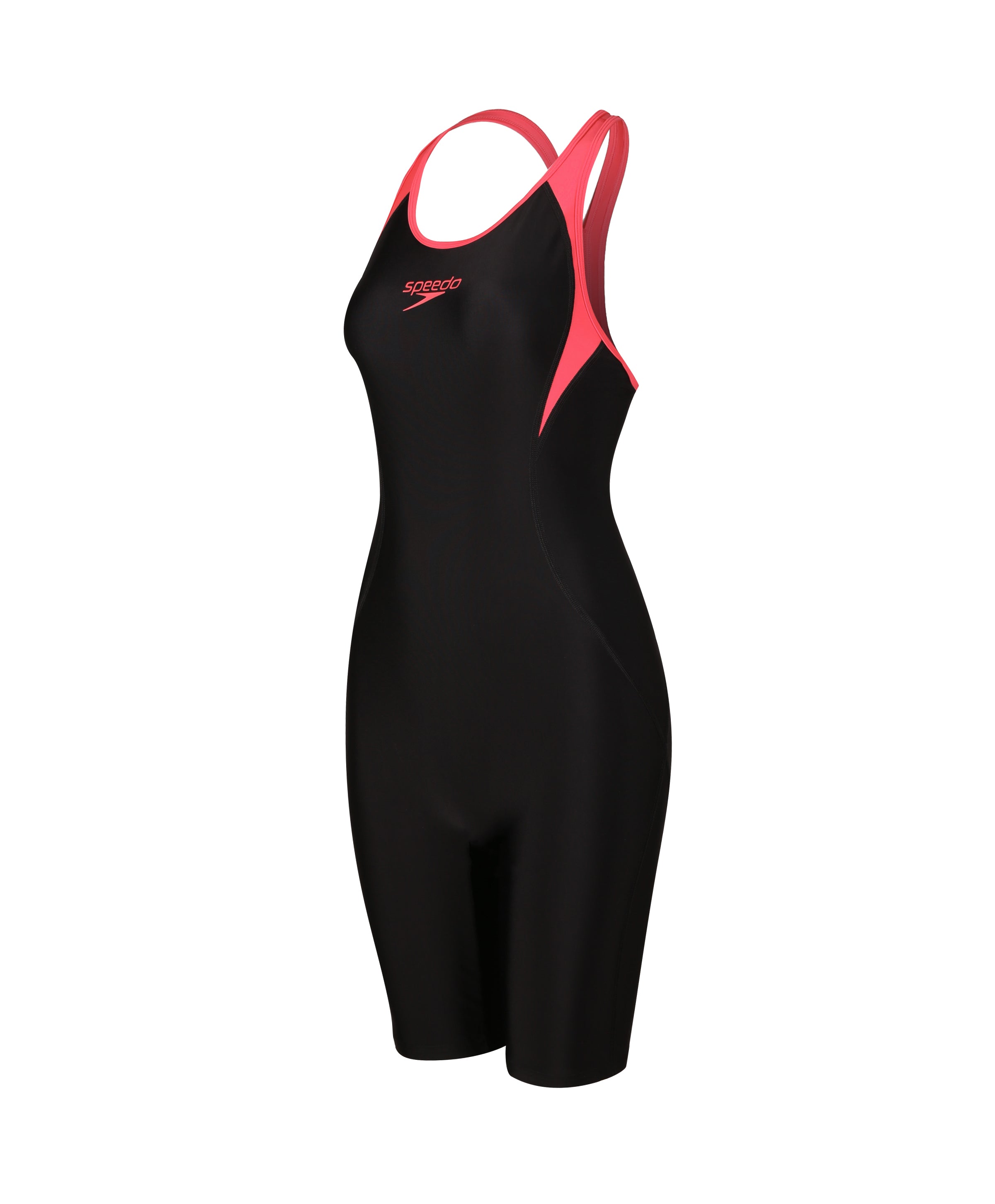Chic and sporty in one, this Sleeveless knee suit in sleek black features an open back and shoulders that increase shoulder flexibility during your workout. Its contrasting pink straps and contour details give it a high-performance look, while the removable bra pads provide comfort and modesty. Made from Endurance10 fabric, this sleeveless knee suit has a higher chlorine resistance than standard swimwear and has a shape-retaining fabric that fits like new for longer with CREORA® HighClo™.