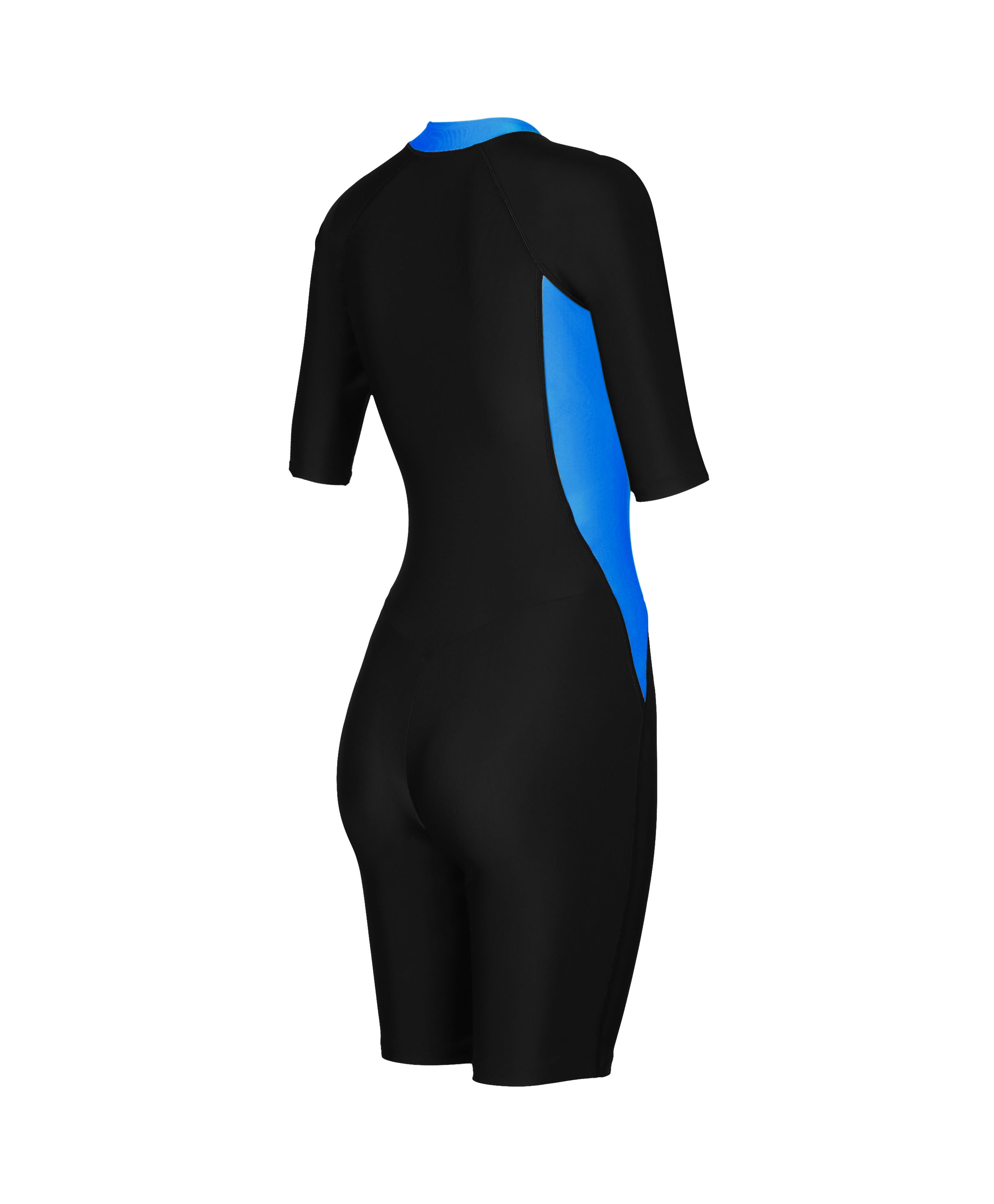 High-coverage swimwear. A stylish option for swimmers seeking extra coverage, the Short Sleeve Kneesuit is ideal for sessions in the pool and on the beach. Stylish in black, it includes light blue panels that visually contour the body and a zip-front design for easy changing. A bust shelf liner and removable bra pads provide light support. Offering higher chlorine resistance than standard swimwear fabrics, our shape-retaining Endurance10 fabric fits like new for longer with CREORA® HighClo™.