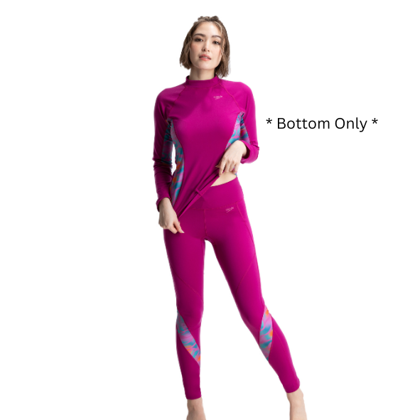 Escape to exotic lands, real or imagined, with our printed Legging featuring a splice of our pretty Twilight Mauve Printed Legging. Ideal for fun times on the board and beach, the legging includes UPF40+ fabric sun protection to keep you protected in and out of the water. A deep waistband provides a comfy fit while the drawstring ensures a great fit. Designed to be durable and better for the environment, it’s made from our new ECO Endurance+ fabric, which is 100% chlorine resistant, quick-drying, and made from 50% recycled materials.