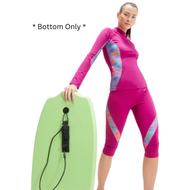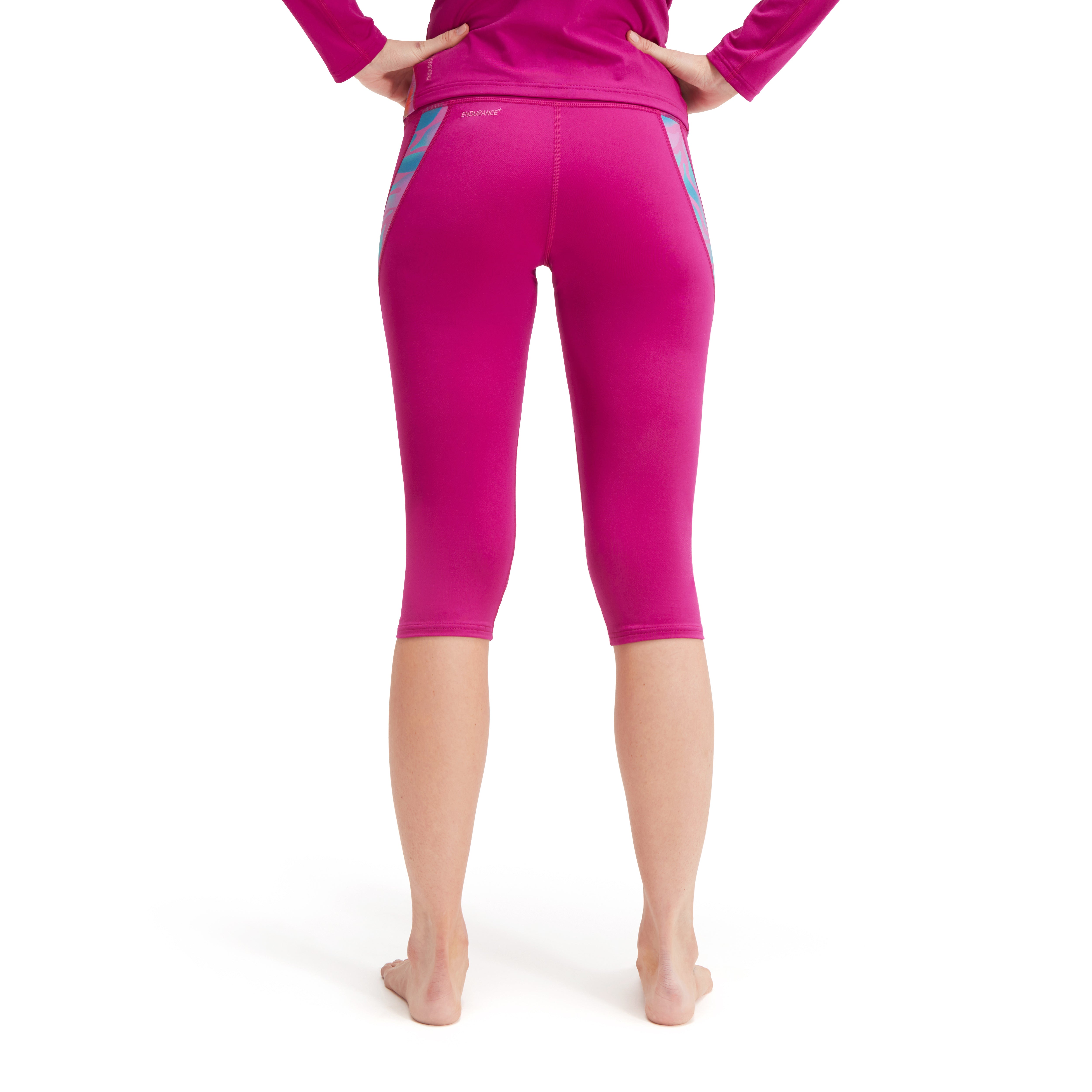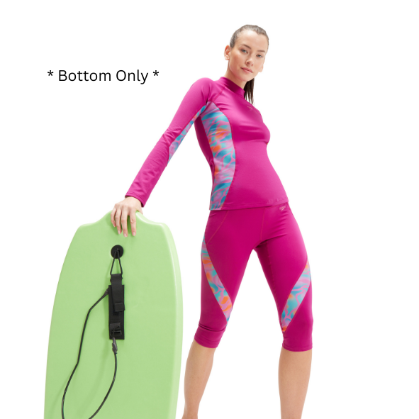 Summer vibes, all year round. Escape to exotic lands, real or imagined, with our 3/4 Pant, featuring a splice of our pretty leaf-inspired print. Ideal for fun times on the board and beach, the Capri-length pant includes UPF40+ fabric sun protection to keep you protected in and out of the water. A deep waistband provides a comfy fit while the drawstring ensures a great fit. Made from our durable ECO Endurance+ fabric, it's quick-drying and 100% chlorine-resistant. Plus, one of the yarns in the ECO Endurance+ fabric is made from 100% post-consumer waste, such as recycled plastic bottles.