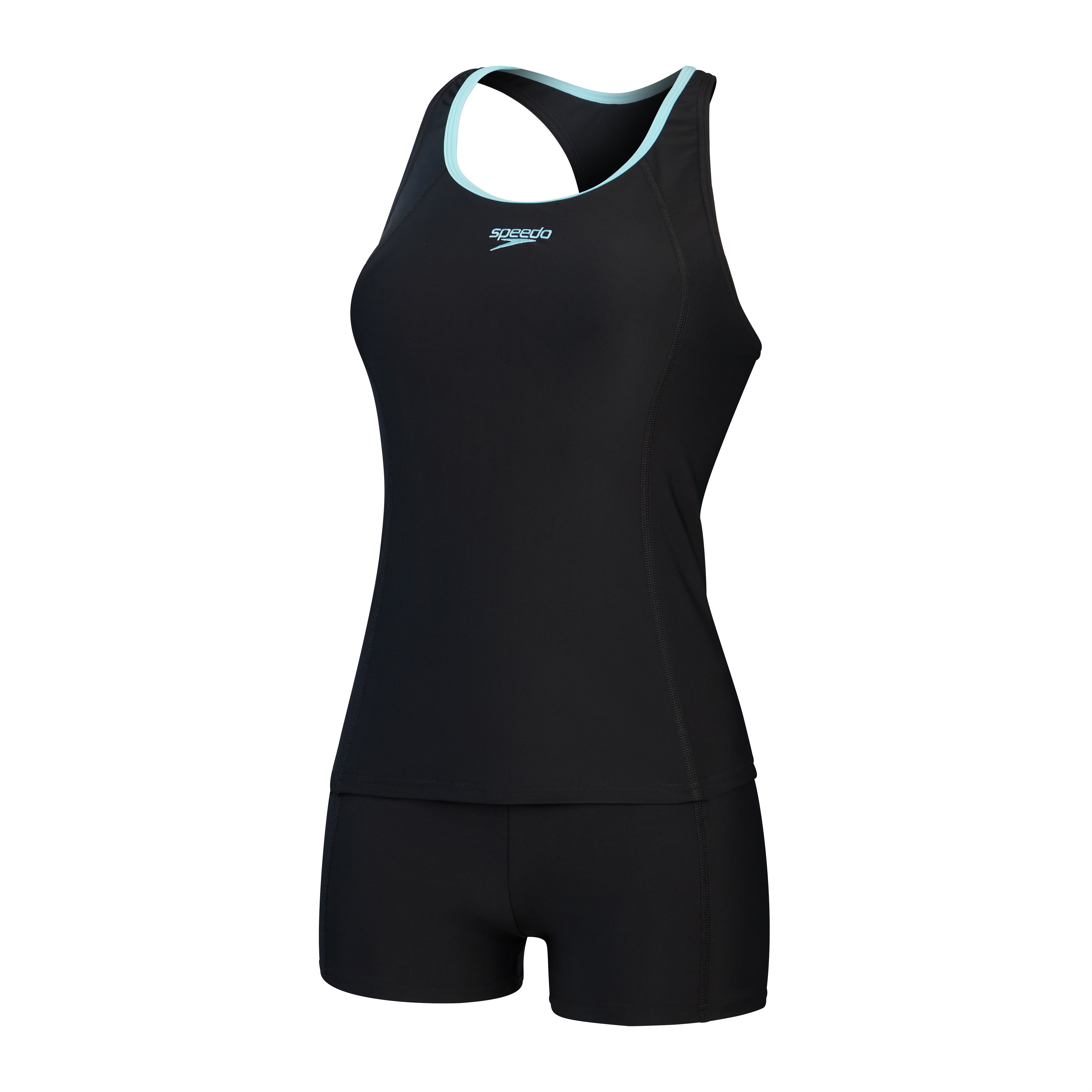 Stylish modest swimwear. Balancing coverage with extra flexibility, this sleek Marine Blue Tankini Boyleg Set features a longer length short for greater leg coverage in the pool and beach. Contrasting blue seam lines give the tankini a high-performance look, whilst removable bra pads provide comfort and modesty. Offering higher chlorine resistance than standard swimwear fabrics, our shape-retaining Endurance10 fabric fits like new for longer with CREORA HighClo.