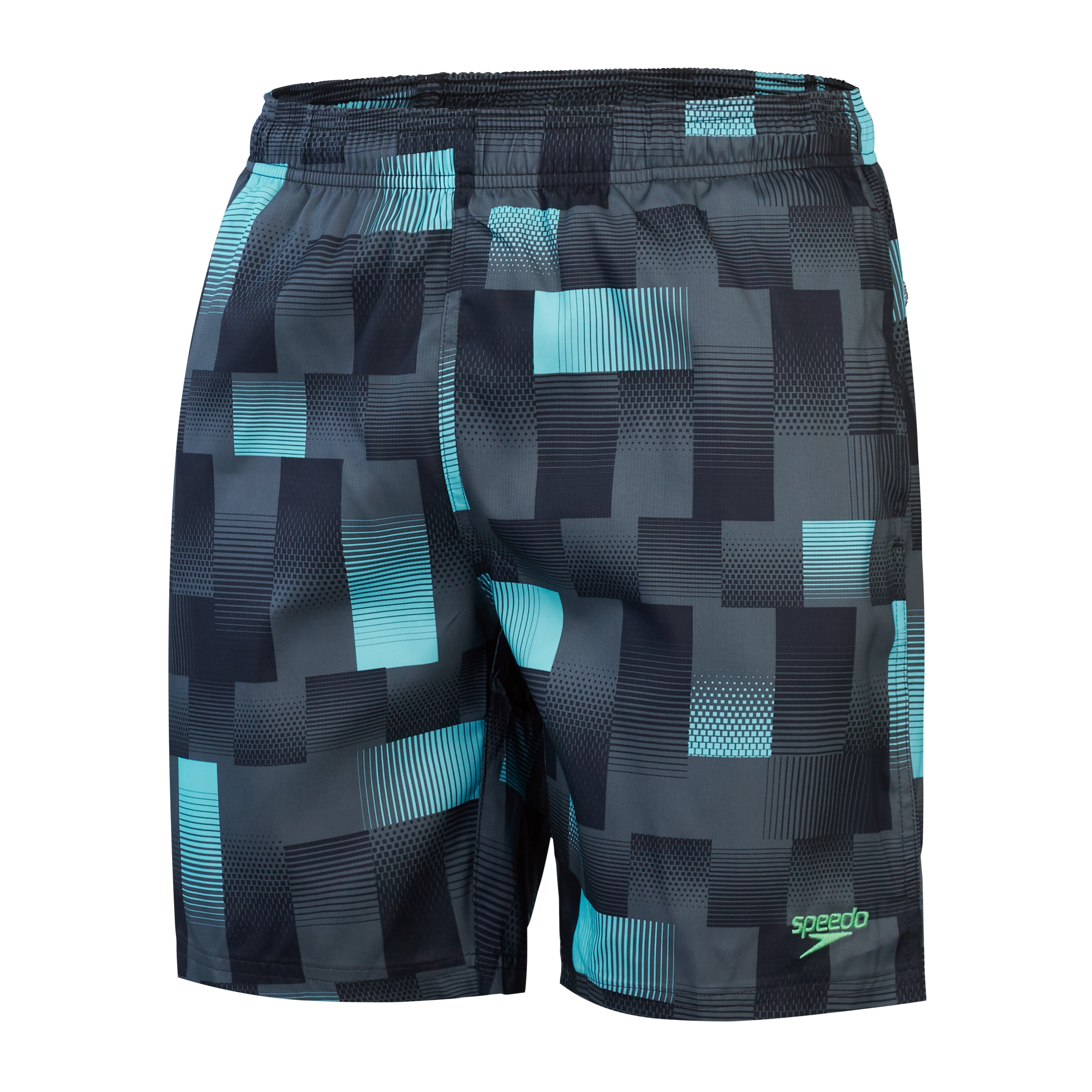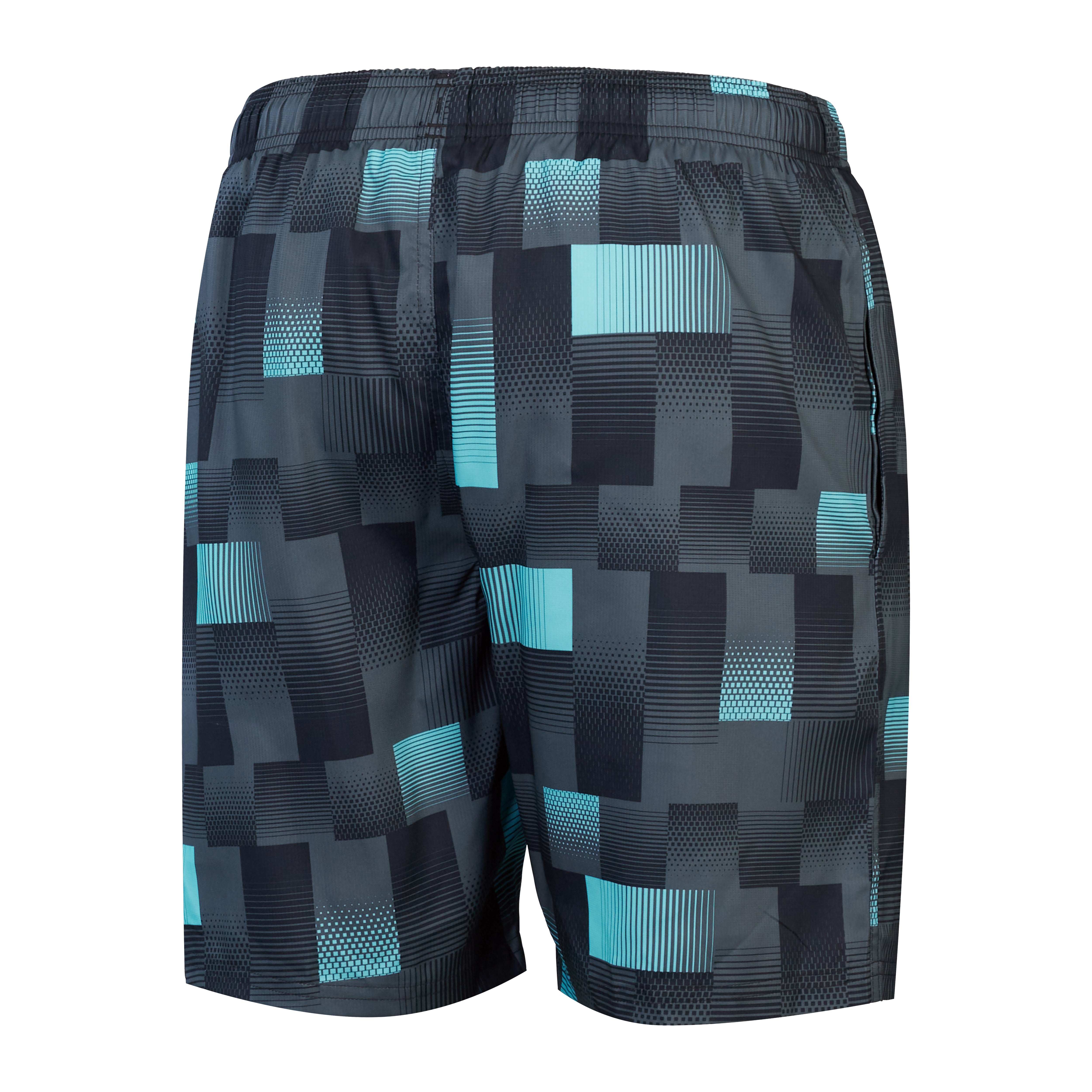 Sports watershort for fitness training and active beach games. Be bold wearing our lightweight 18” Sport Watershort, featuring a striking pixelated print in grey, black, and blue. A drawstring waist allows you to adjust the fit of the shorts so they feel secure and comfy during a workout. Side pockets with drainage ensure it feels light and comfortable, while the water-repellent finish keeps it dry to the touch. The polyester yarn in this Express Lite fabric has been made from 100% recycled polyester.