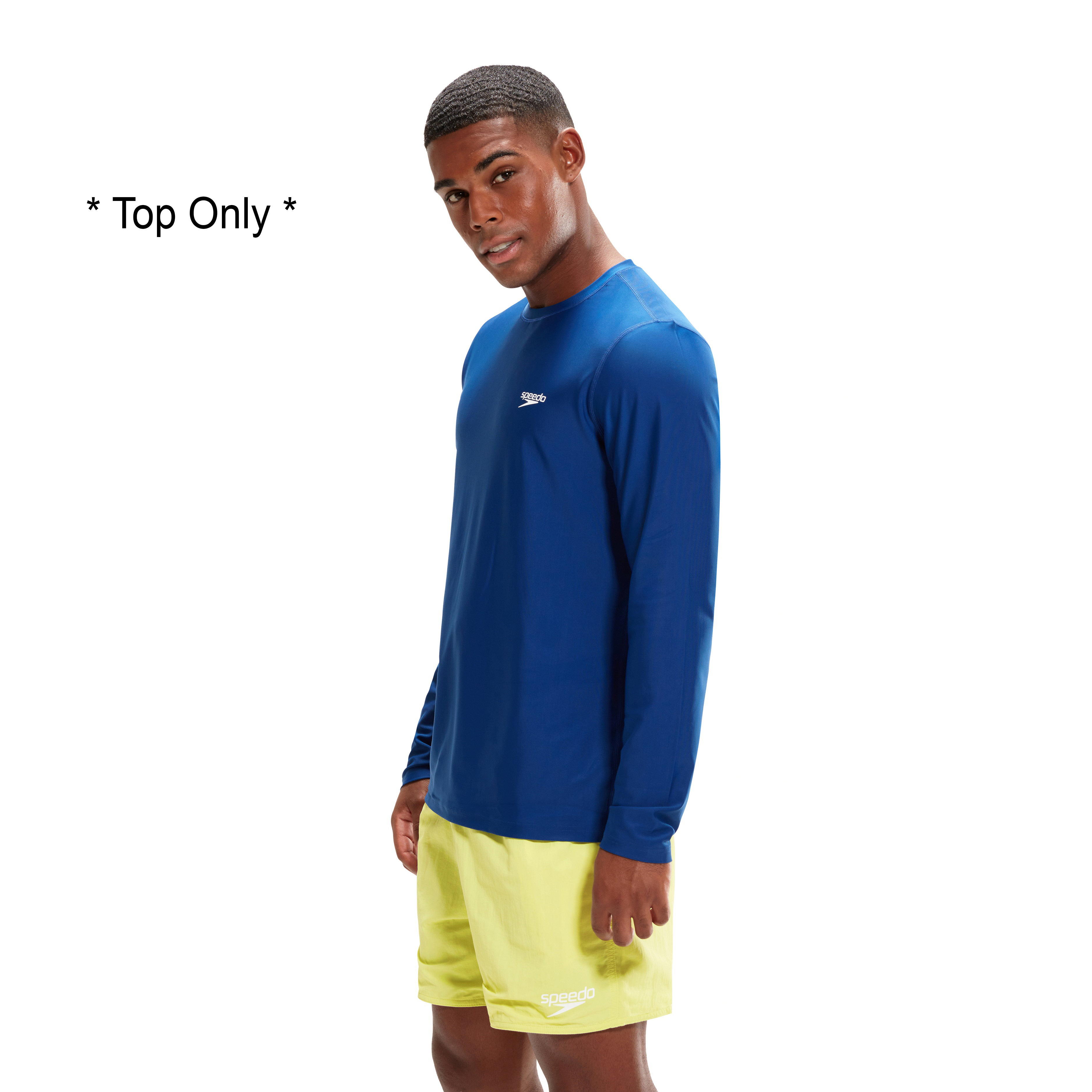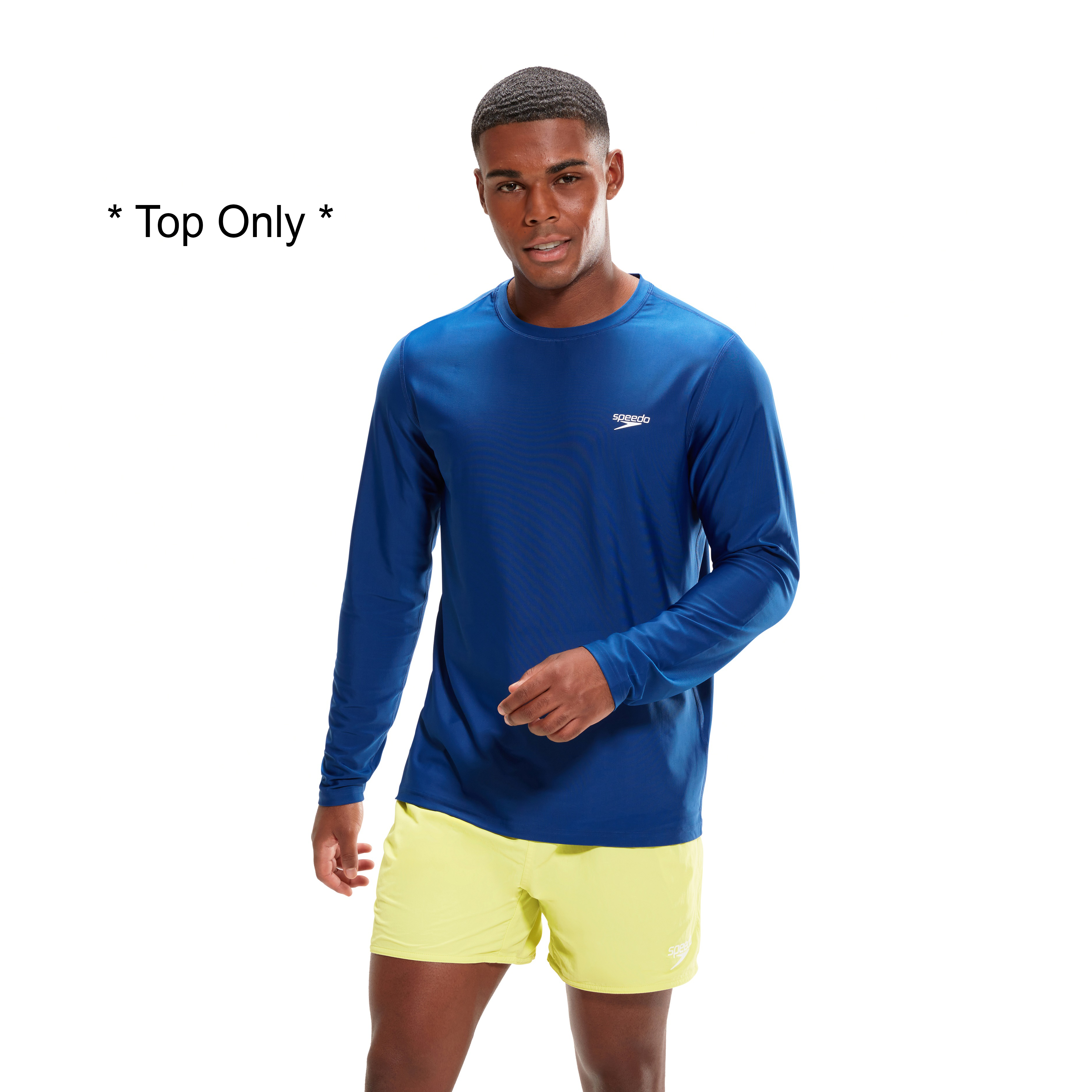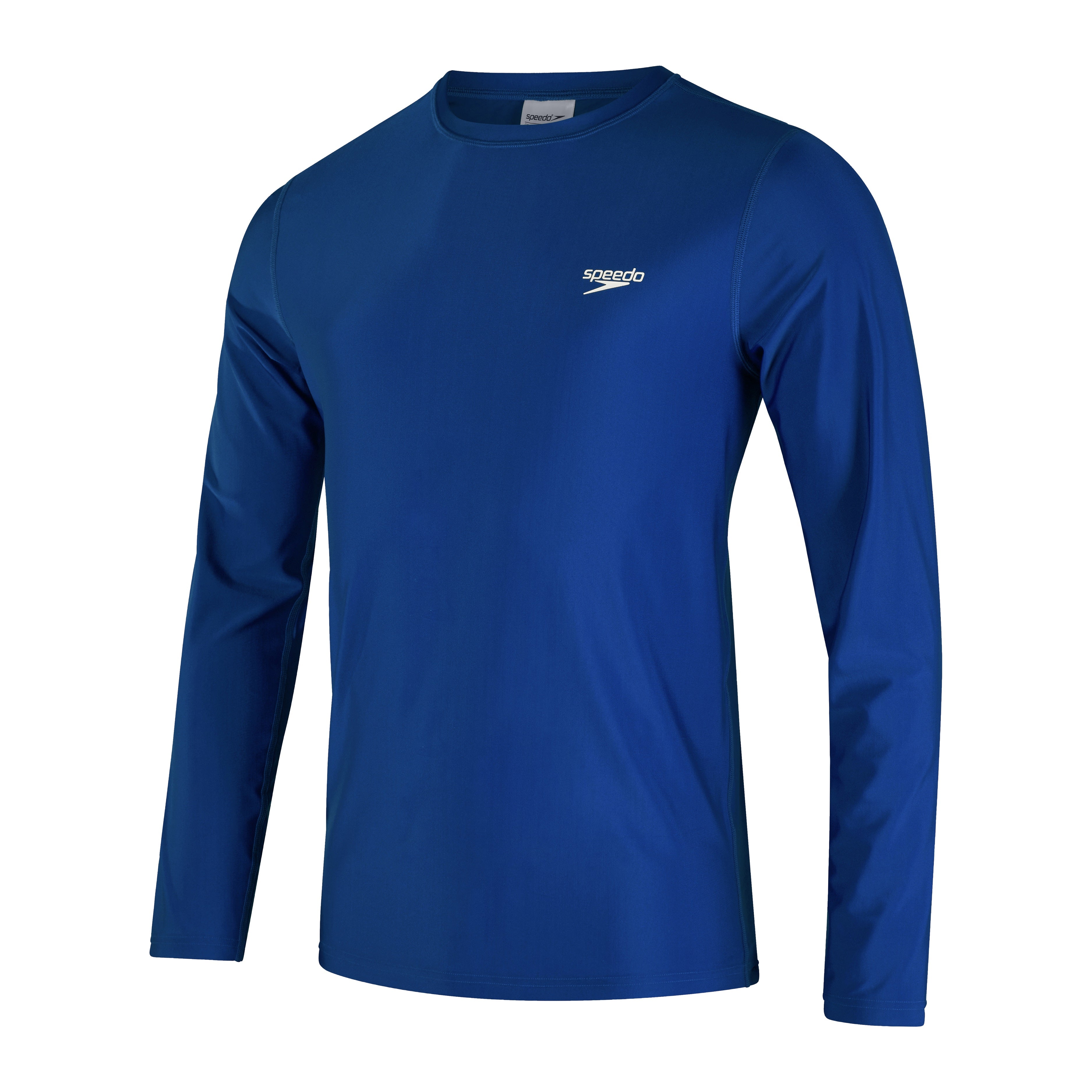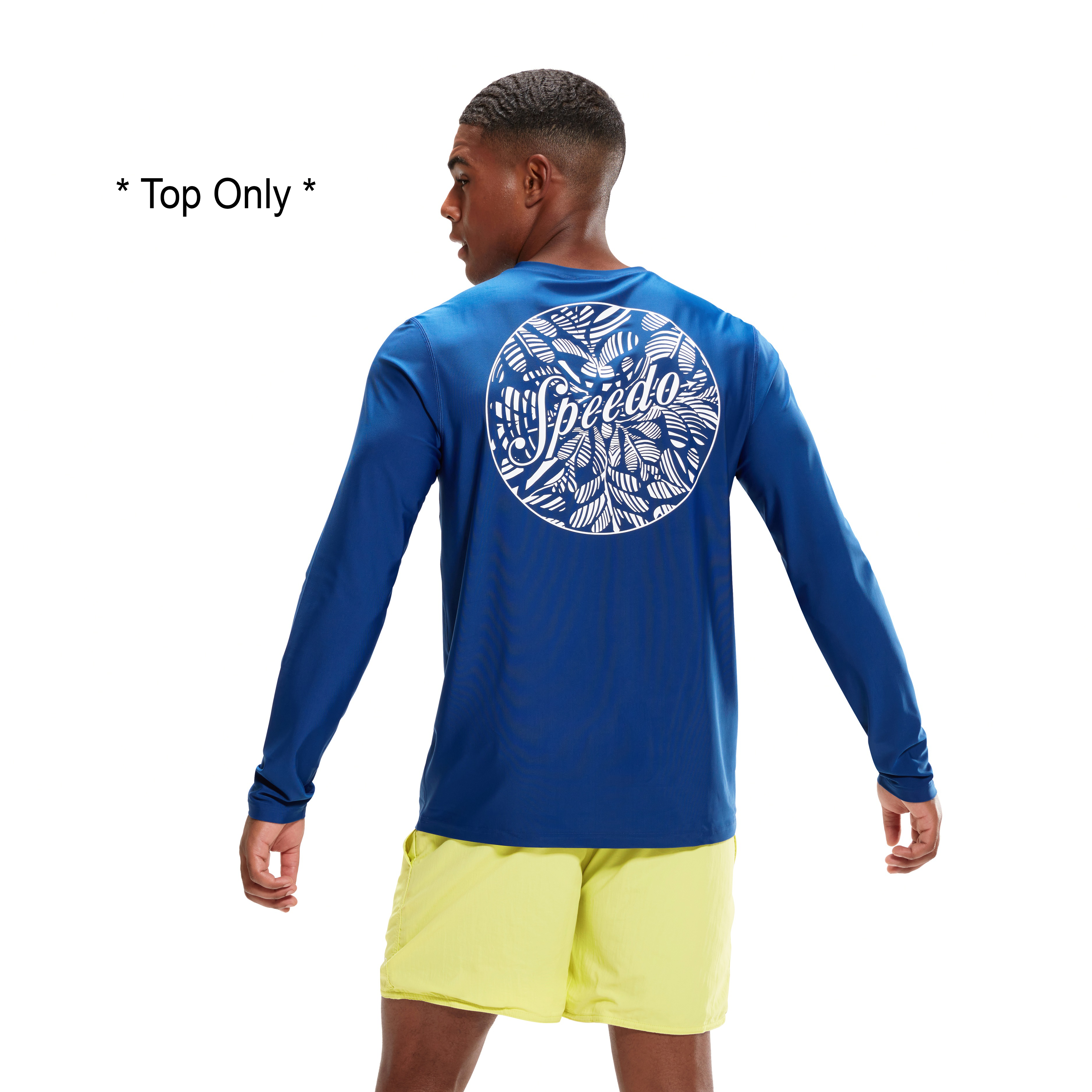 It’s a Bondi vibe. Stay protected from the sun whatever the weather wearing our Long Sleeve Swim Tee in retro blue, featuring a Speedo logo motif inspired by our Aussie heritage. Comfortable wet and dry, the relaxed-fit, pull-on style offers UPF 40 fabric sun protection, so you’re covered both in and out of the water. Ideal for the beach and pool, the tee offers higher chlorine resistance than standard swimwear fabrics and fits like new for longer with CREORA® HighClo™. Thanks to our ECO EnduraBrite fabric, it provides superb color performance, so you can enjoy the retro blue color for longer. Offering improved eco-credentials, the tee is made from 100% post-consumer waste, such as plastic bottles.