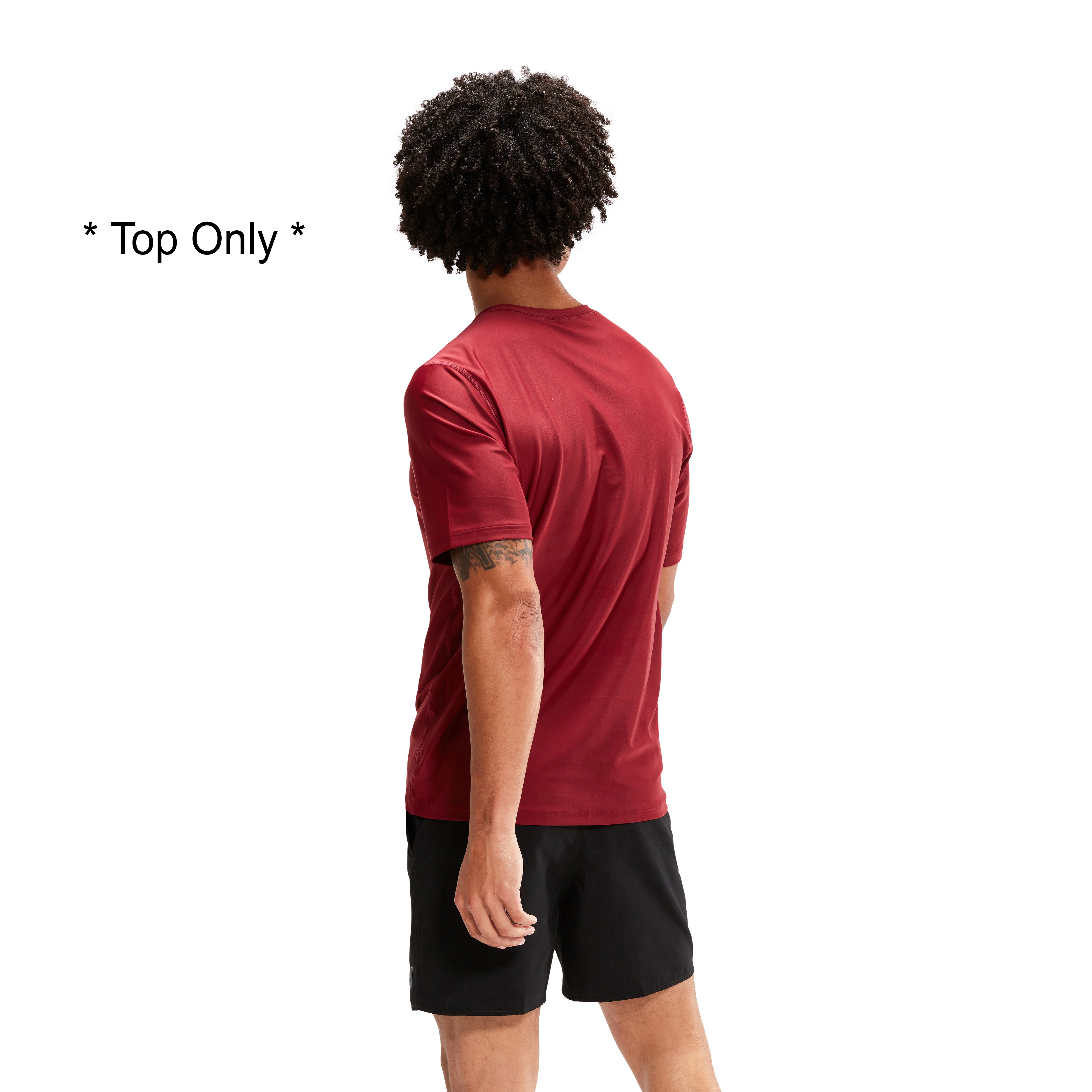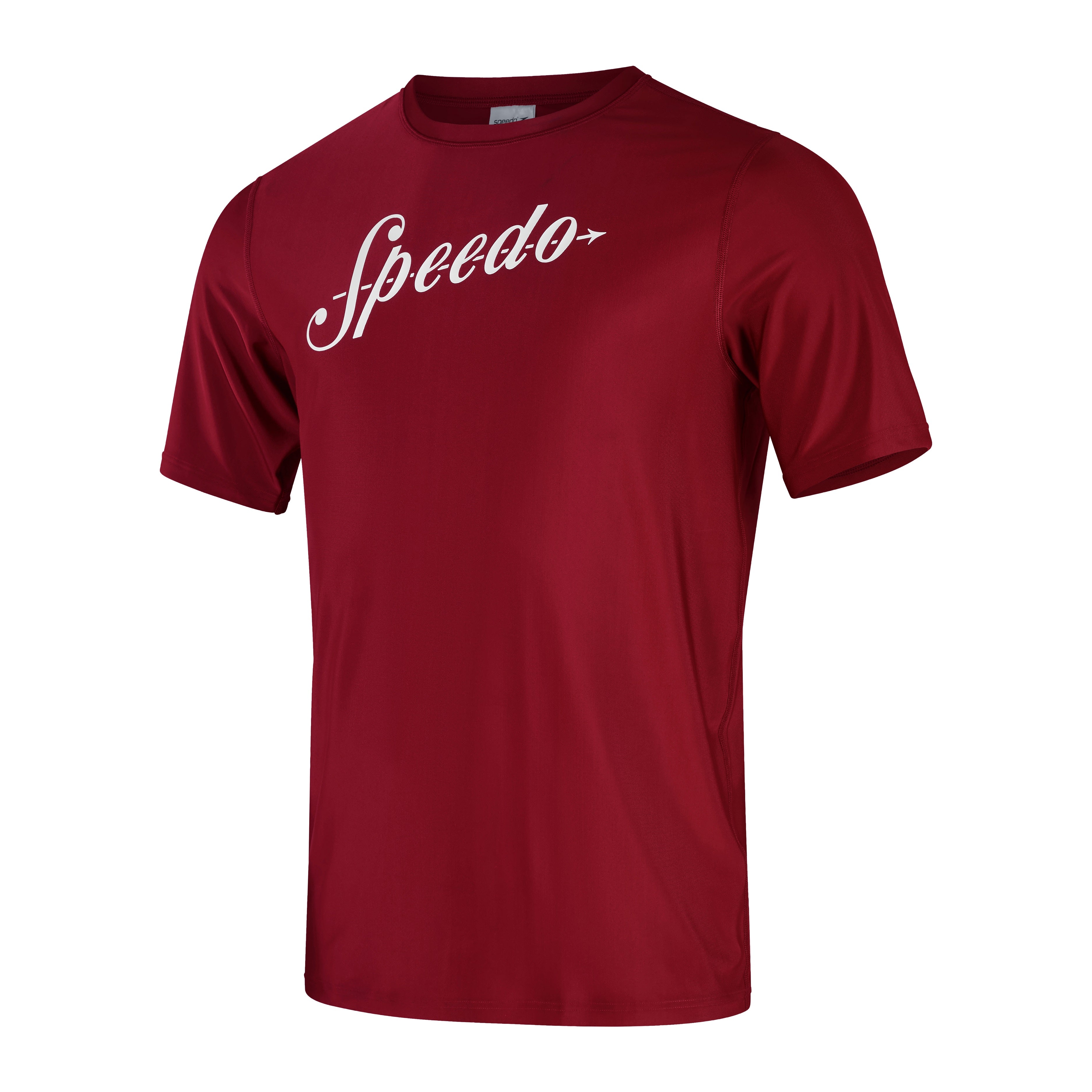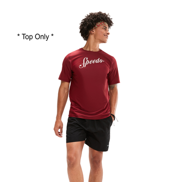 It’s a Bondi vibe. Stay protected from the sun whatever the weather wearing our Short Sleeve Swim Tee, featuring a retro-style Speedo logo inspired by our Aussie heritage. Comfortable wet and dry, the relaxed, pull-on style offers UPF 40 fabric sun protection, so you’re covered both in and out of the water. Ideal for the beach and pool, the tee offers higher chlorine resistance than standard swimwear fabrics and fits like new for longer with CREORA® HighClo™. Thanks to our ECO EnduraBrite fabric, it provides superb color performance, so you can enjoy the retro burgundy color for longer. Offering improved eco-credentials, the tee is made from 100% post-consumer waste, such as plastic bottles.